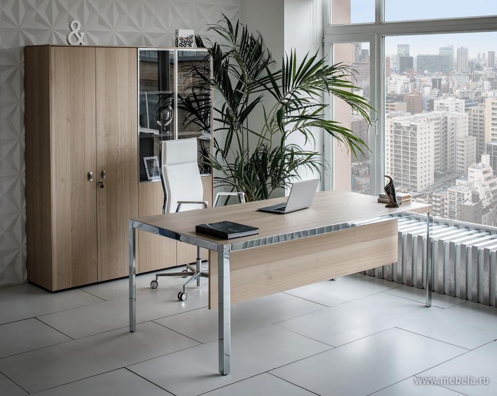 В основе концепции стола Энцо (Enzo) – минималистичная металлическая рама, в которую встроена столешница из шпонированного МДФ. Конструкция и опоры с треугольным сечением из металлического профиля обеспечивают максимальную устойчивость и прочность.