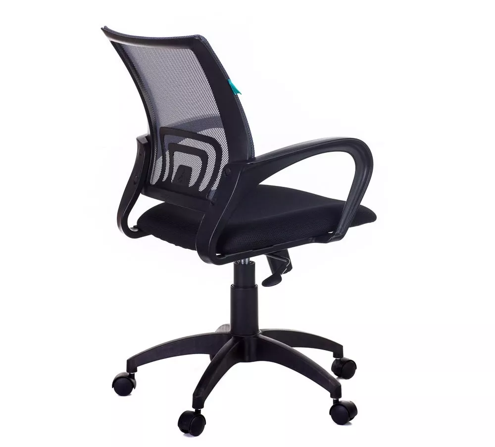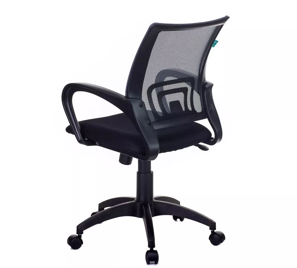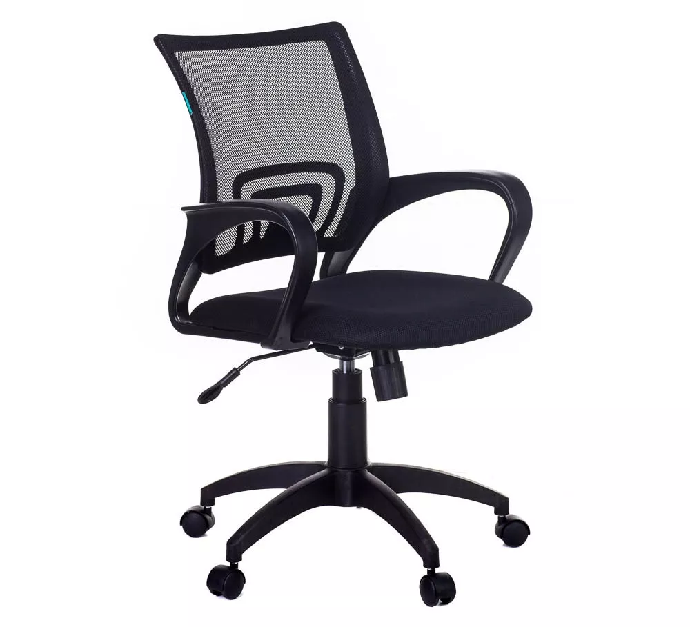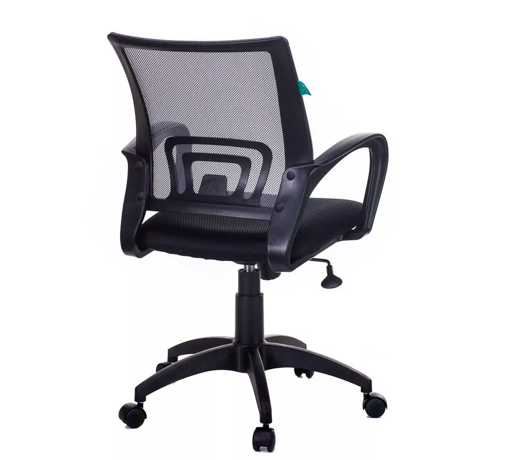 Ткань черного цвета, которой обтянуто сидение кресла, отличается своей прочностью и износостойкостью. Предусмотрен механизм качания. Пятилучевая крестовина изготовлена из прочного пластика. В сочетании с поворотными колесиками, она позволяет креслу легко и бесшумно передвигаться по любому напольному покрытию. Ограничения - вес более 120 кг.