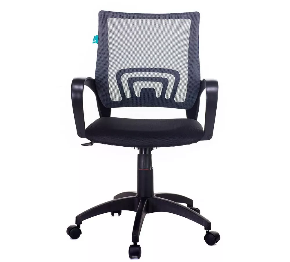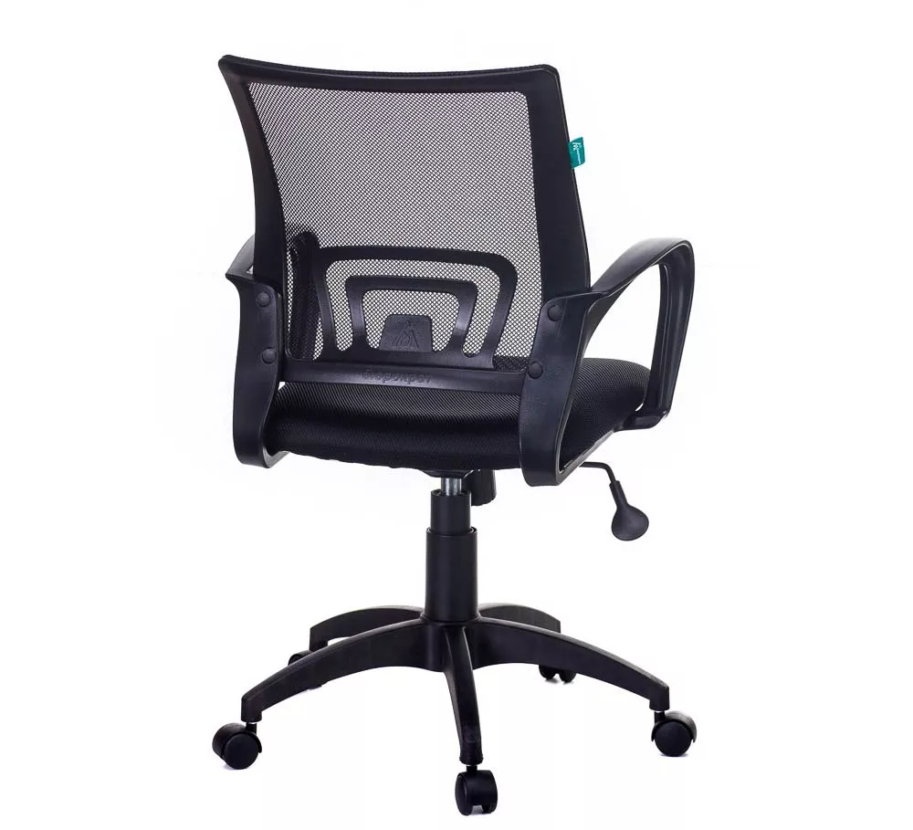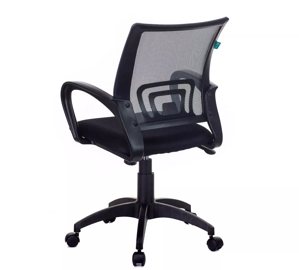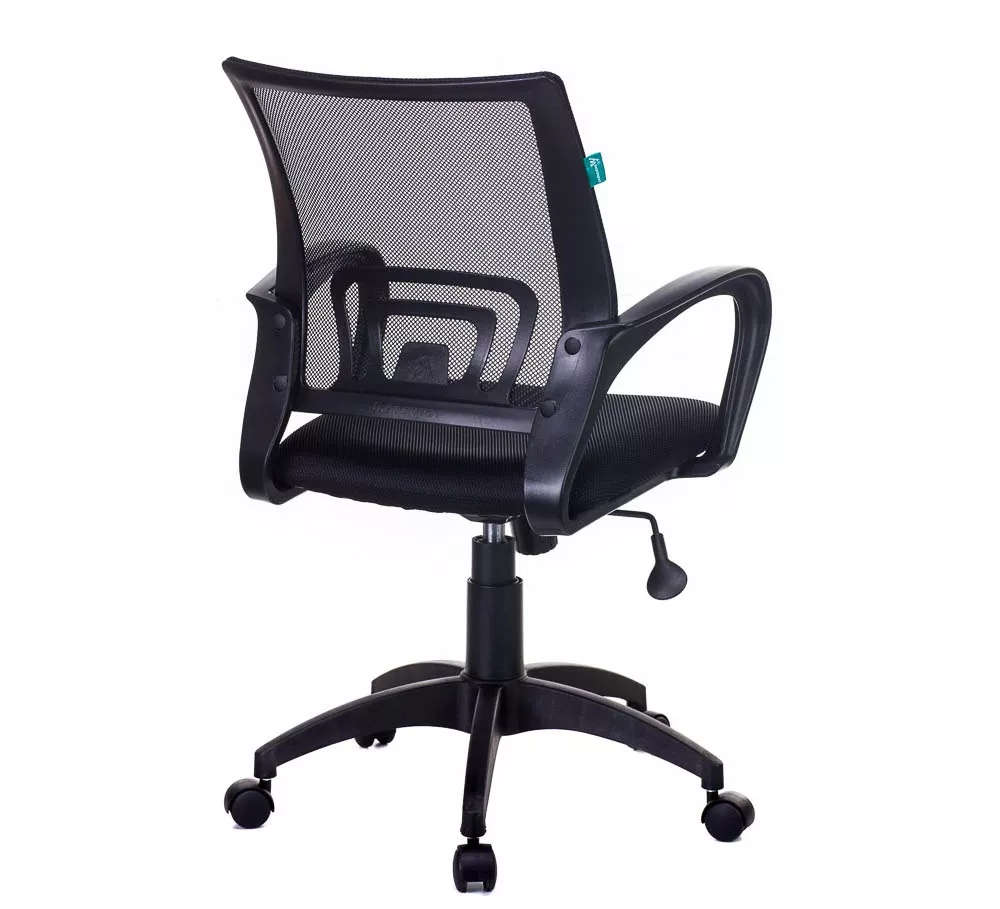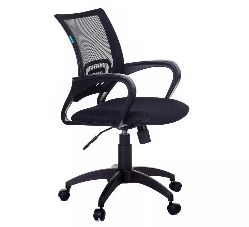 Ткань черного цвета, которой обтянуто сидение кресла, отличается своей прочностью и износостойкостью. Предусмотрен механизм качания. Пятилучевая крестовина изготовлена из прочного пластика. В сочетании с поворотными колесиками, она позволяет креслу легко и бесшумно передвигаться по любому напольному покрытию. Ограничения - вес более 120 кг.