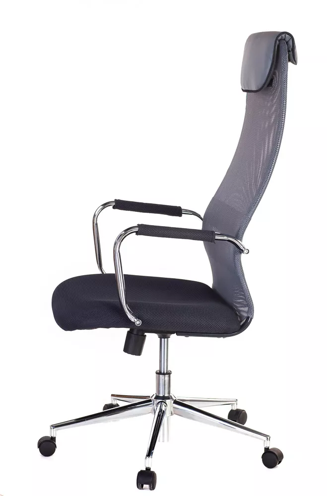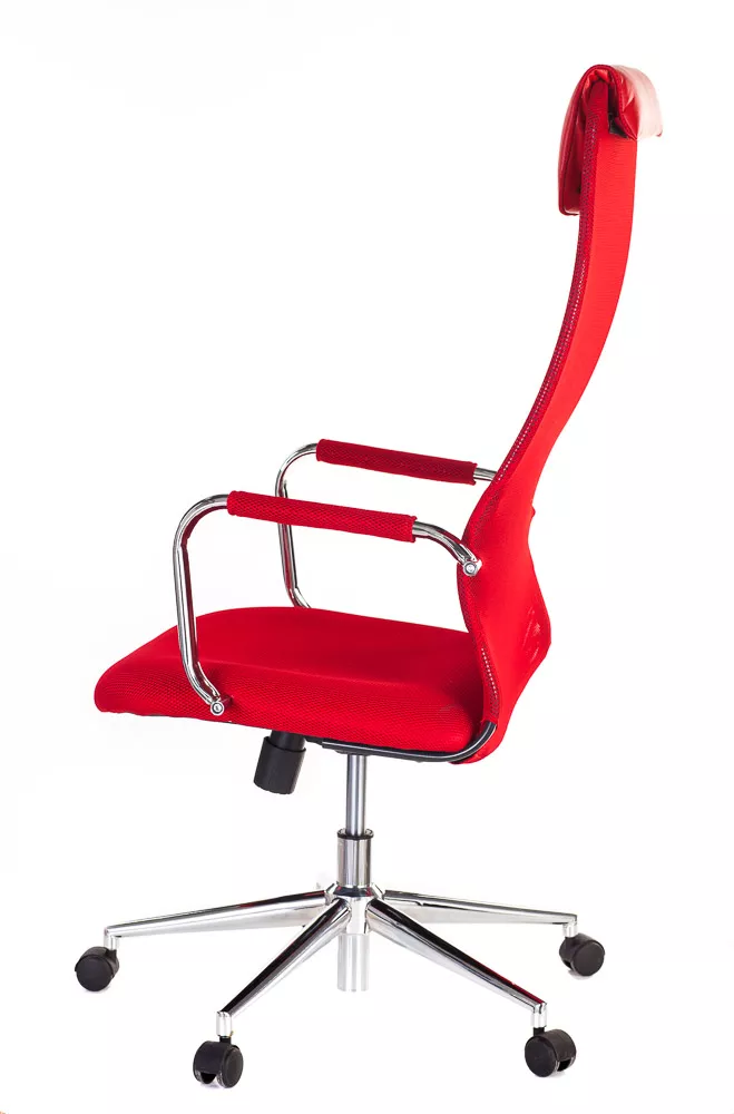 Изящное кресло с необычным изгибом спинки. Вытянутая задняя поверхность с подголовником и горизонтальной полоской по центру выглядит невероятно элегантно. Кресло выполнено из сетчатой ткани, экокожи, сетки и пластика. Представлено в четырех цветах: черном, сером, красном и синем. Все четыре модели выглядят ярко.
