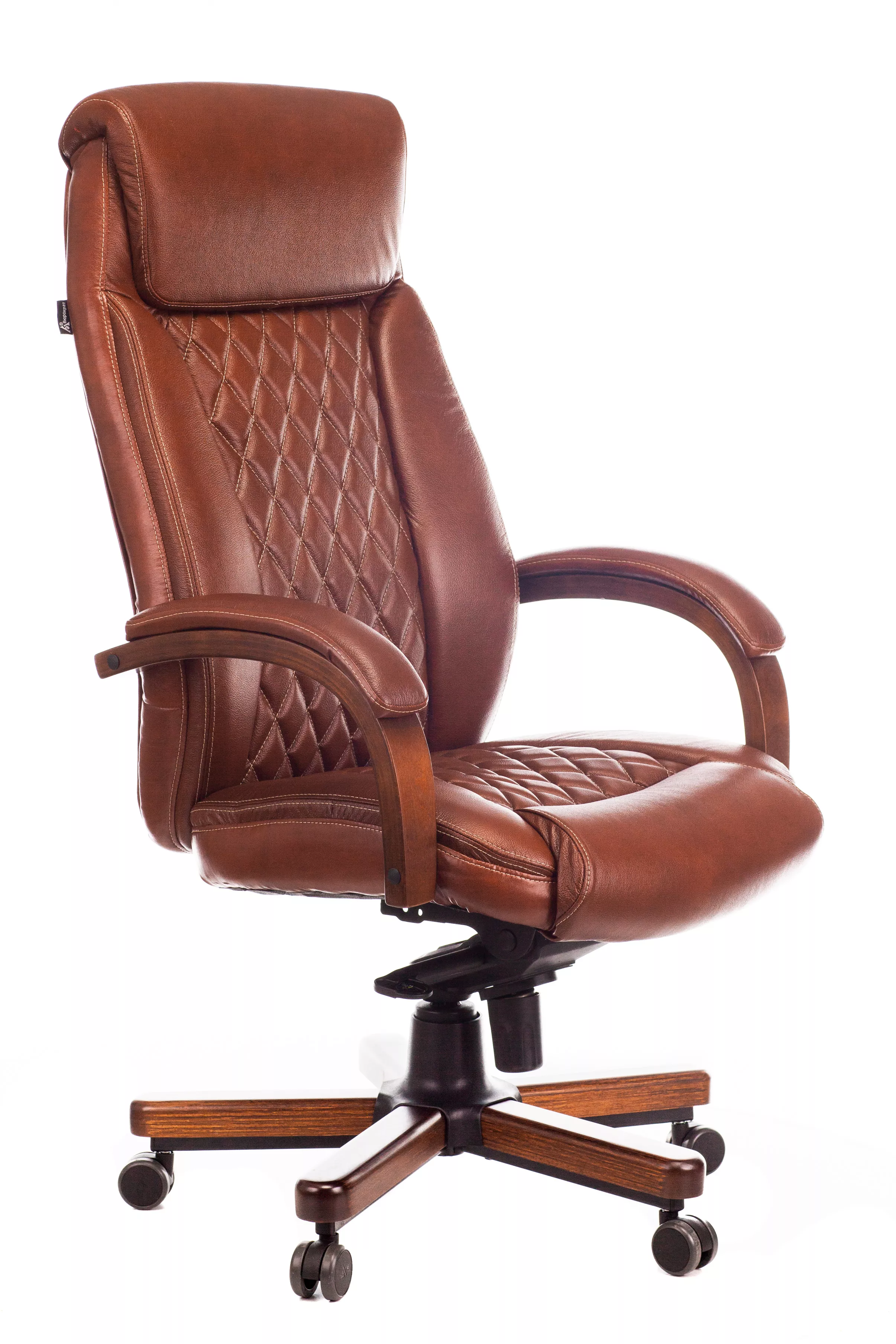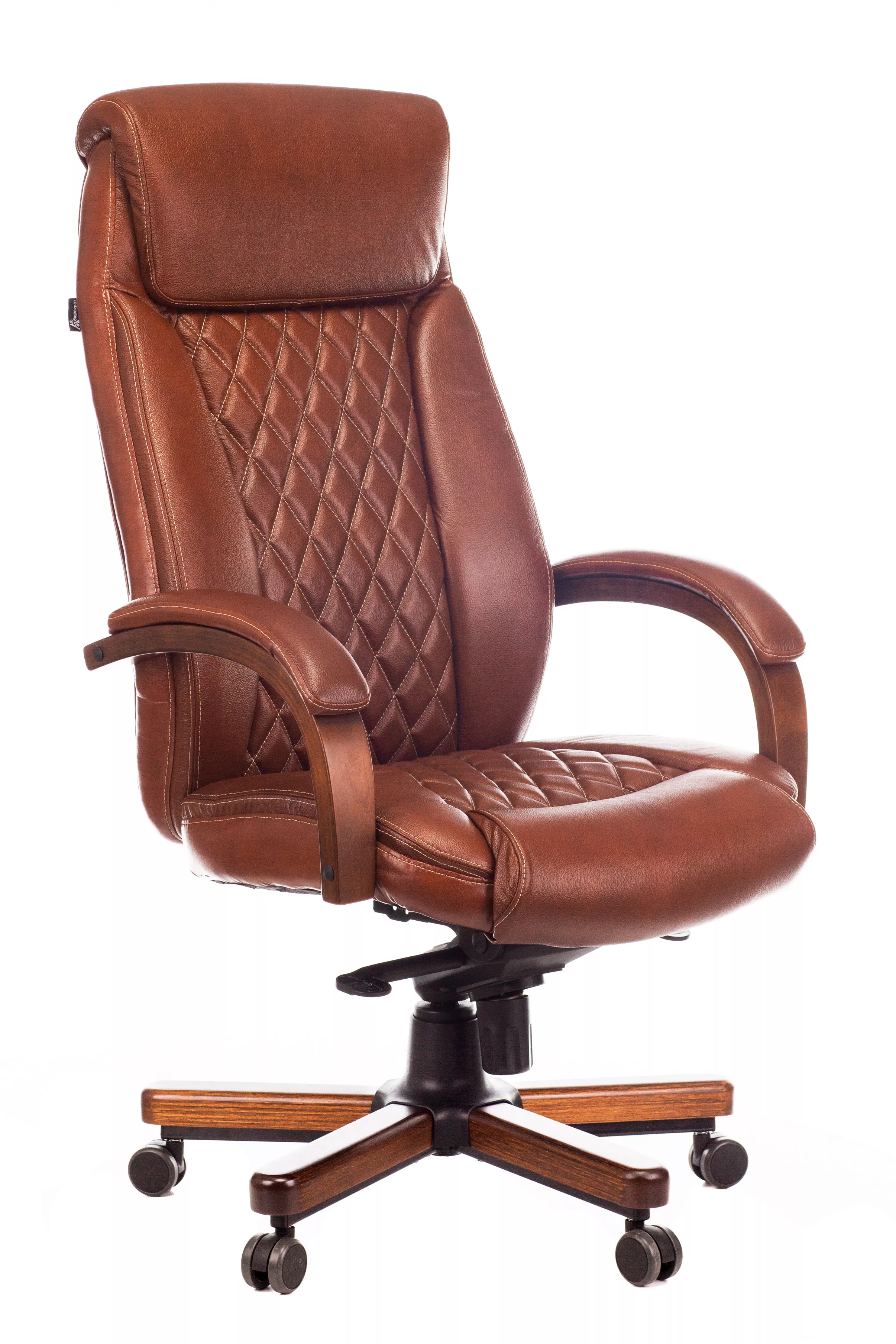 кресло T-9924Walnut, коричневая кожа с компаньоном