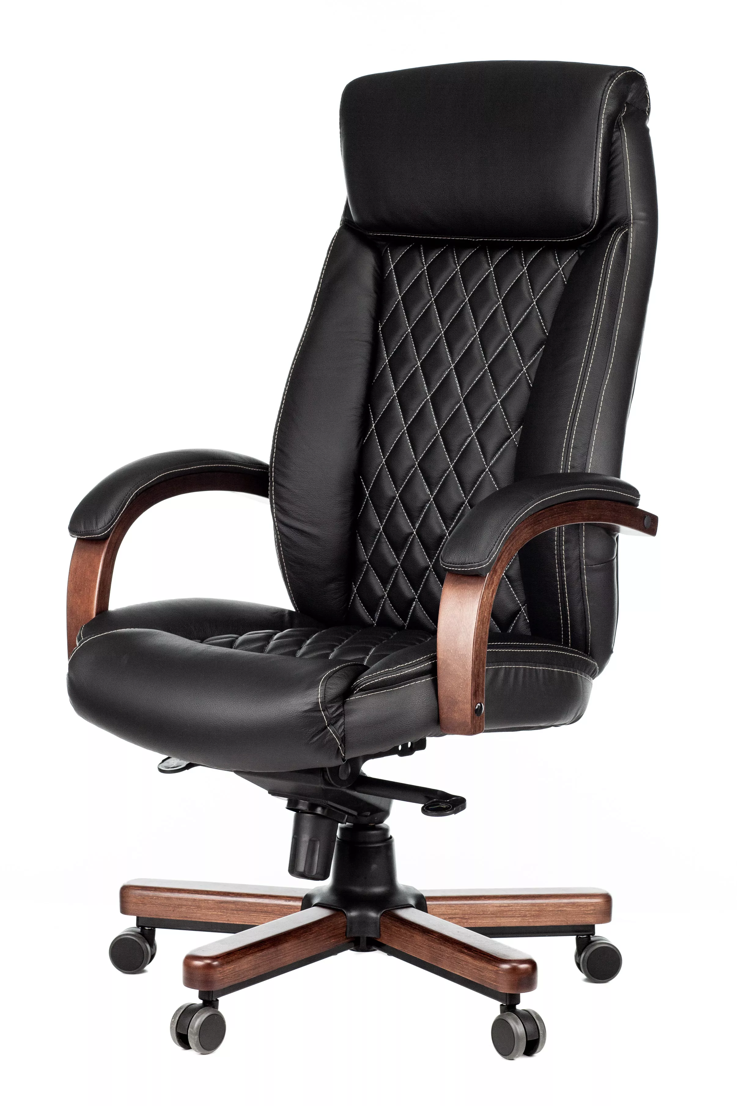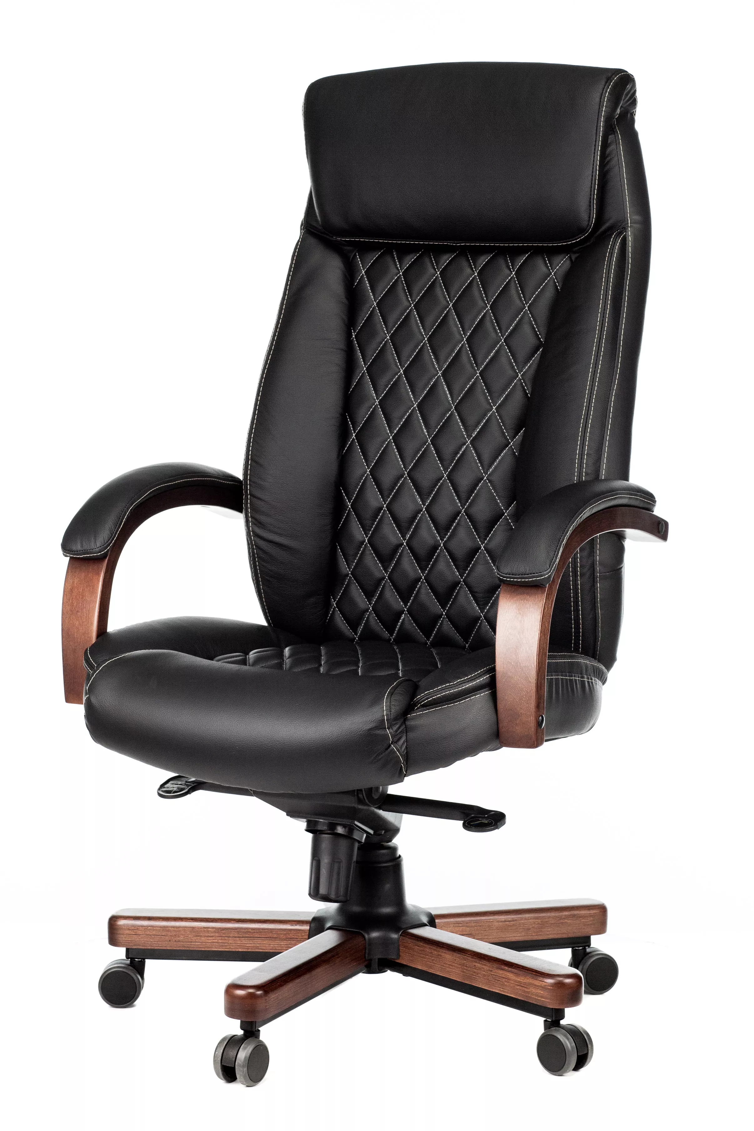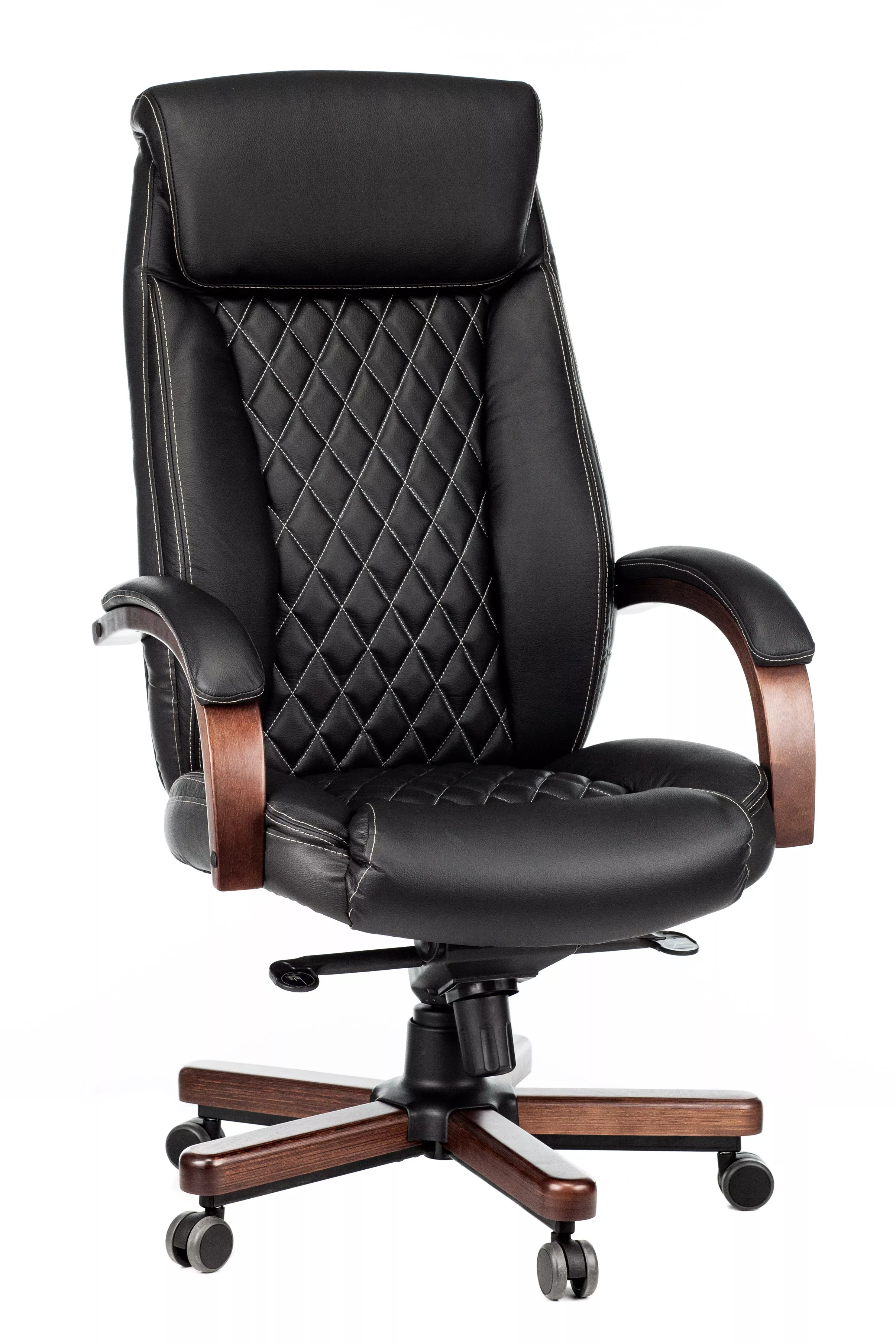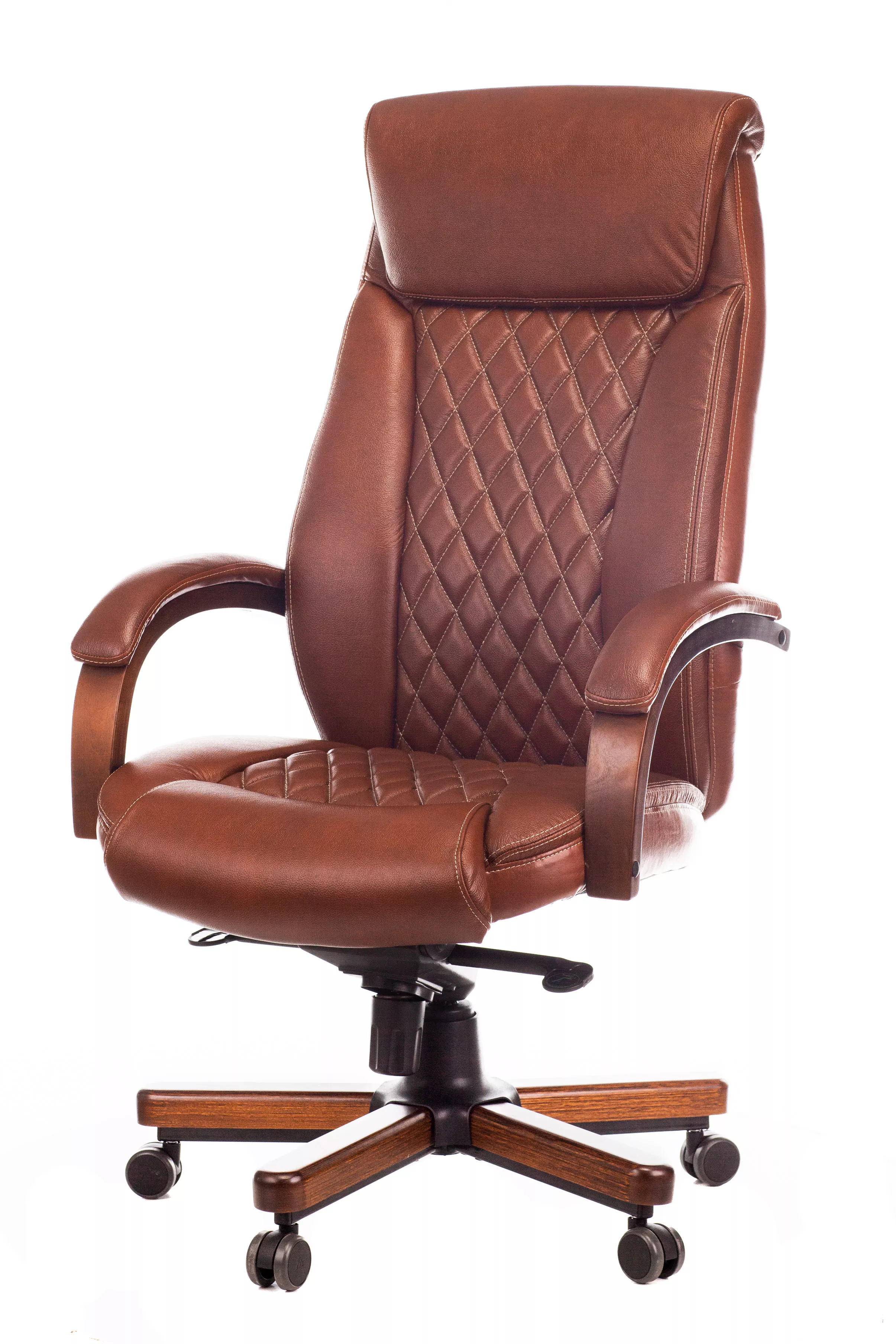 Элегантный дизайн спинки с выпуклыми рельефными боковинами и накладным подголовником обеспечивают удобную мягкую посадку и правильную поддержку спины, без симптомов усталости. Фигурное тиснение «мелкие ромбы» на средней части спинки и сиденья, изогнутые подлокотники с кожаными накладками создают изысканный дизайн и мягкий массажный эффект.