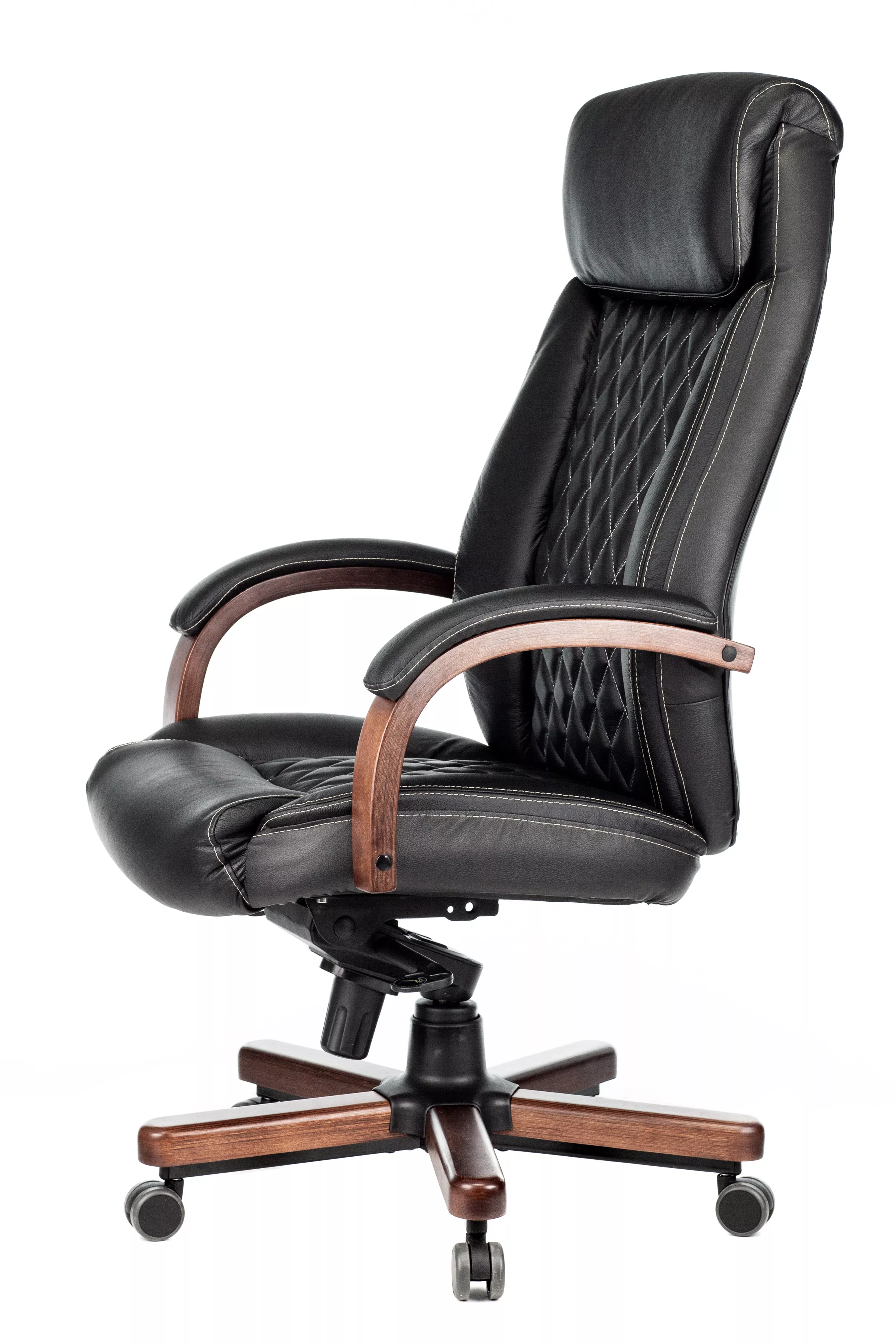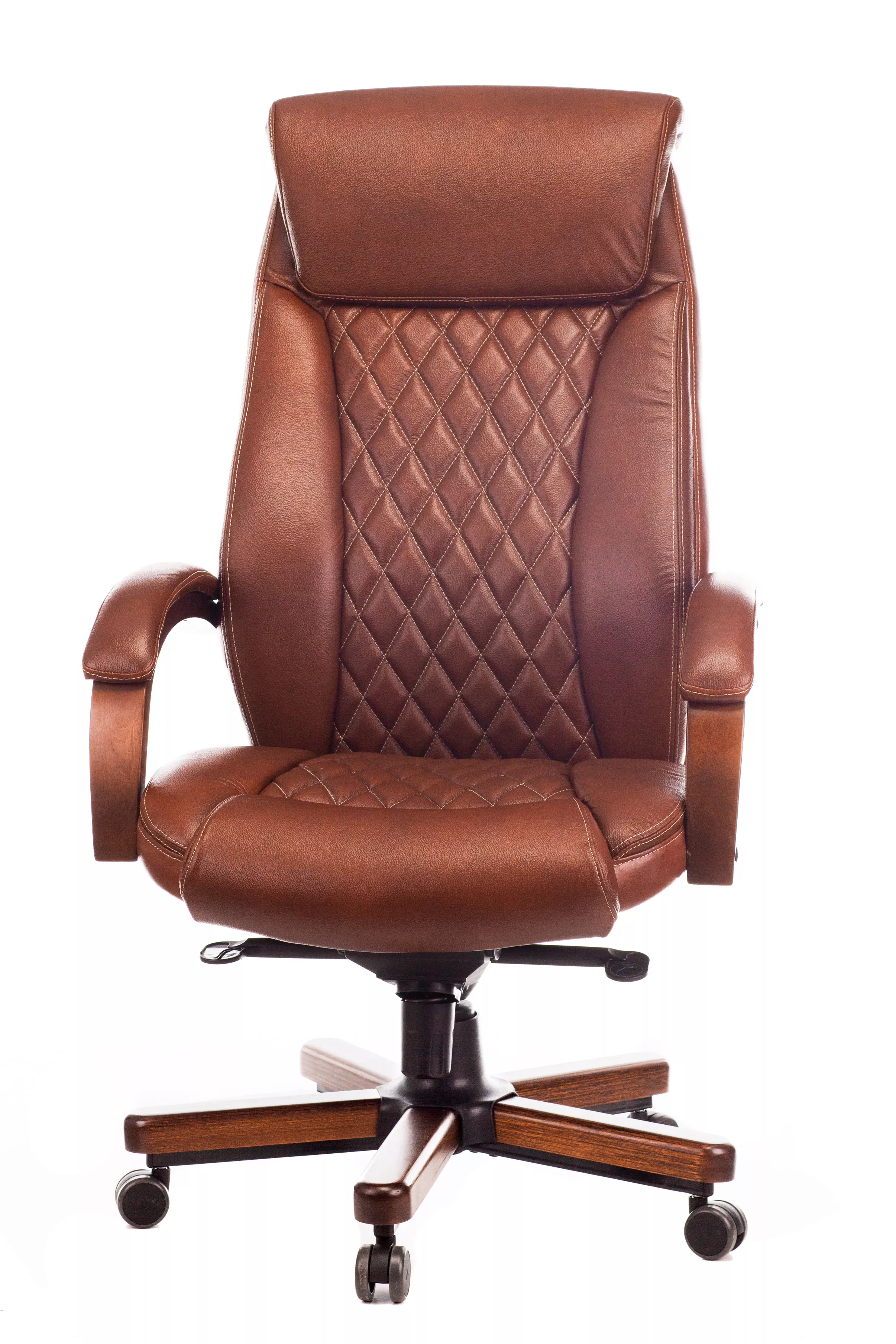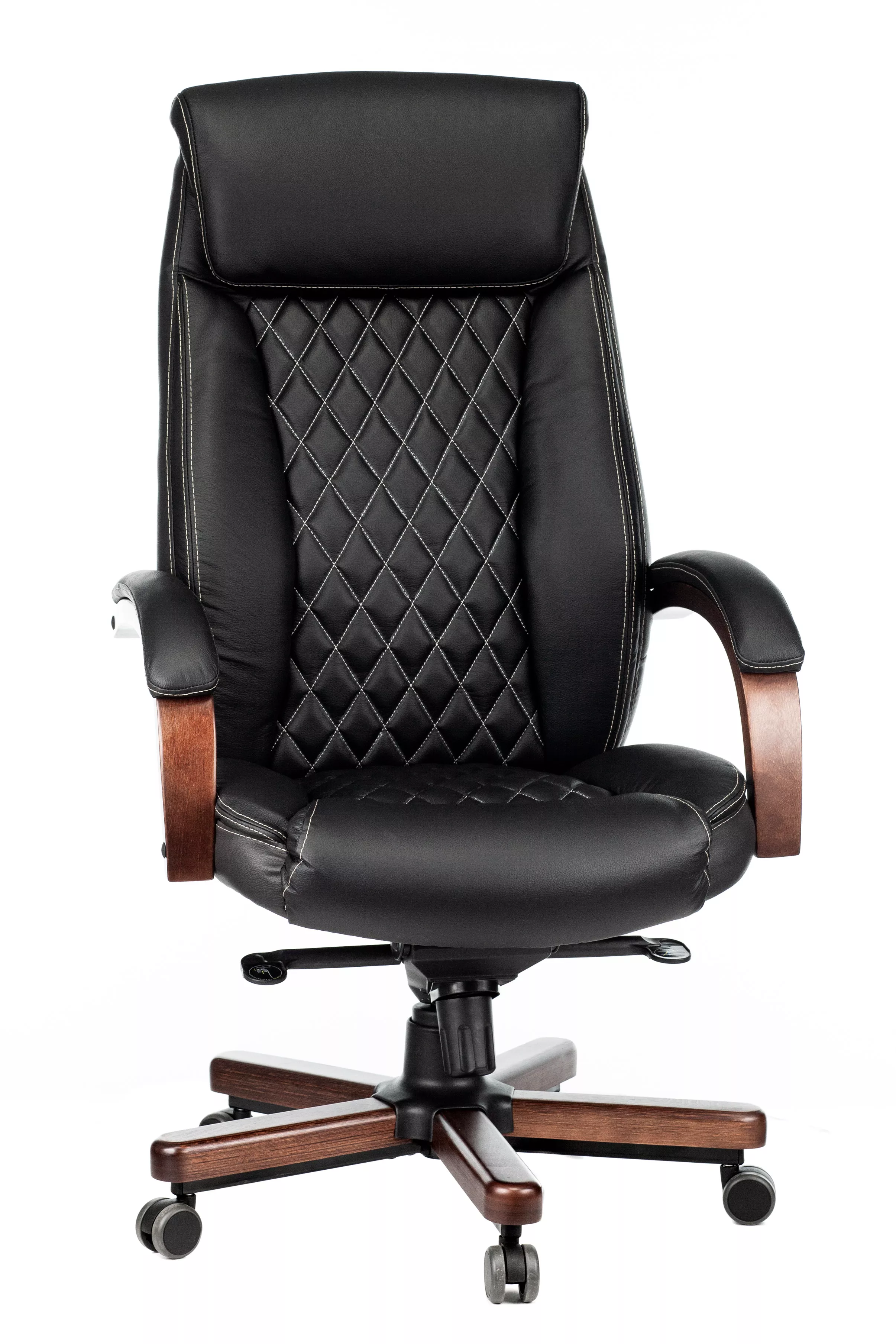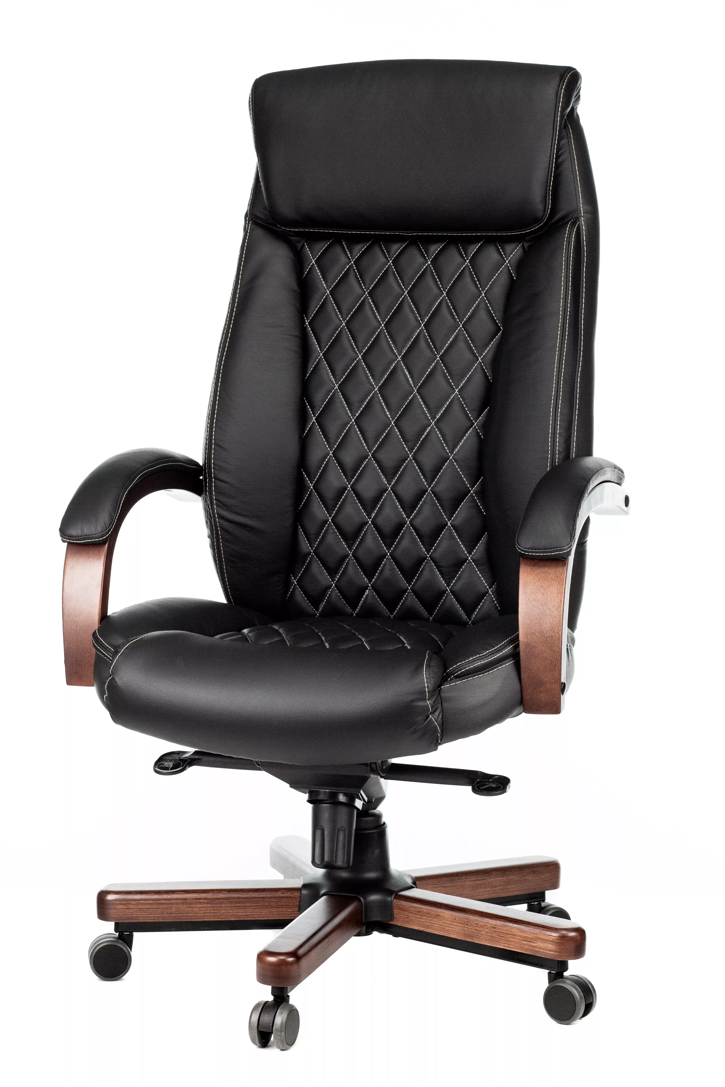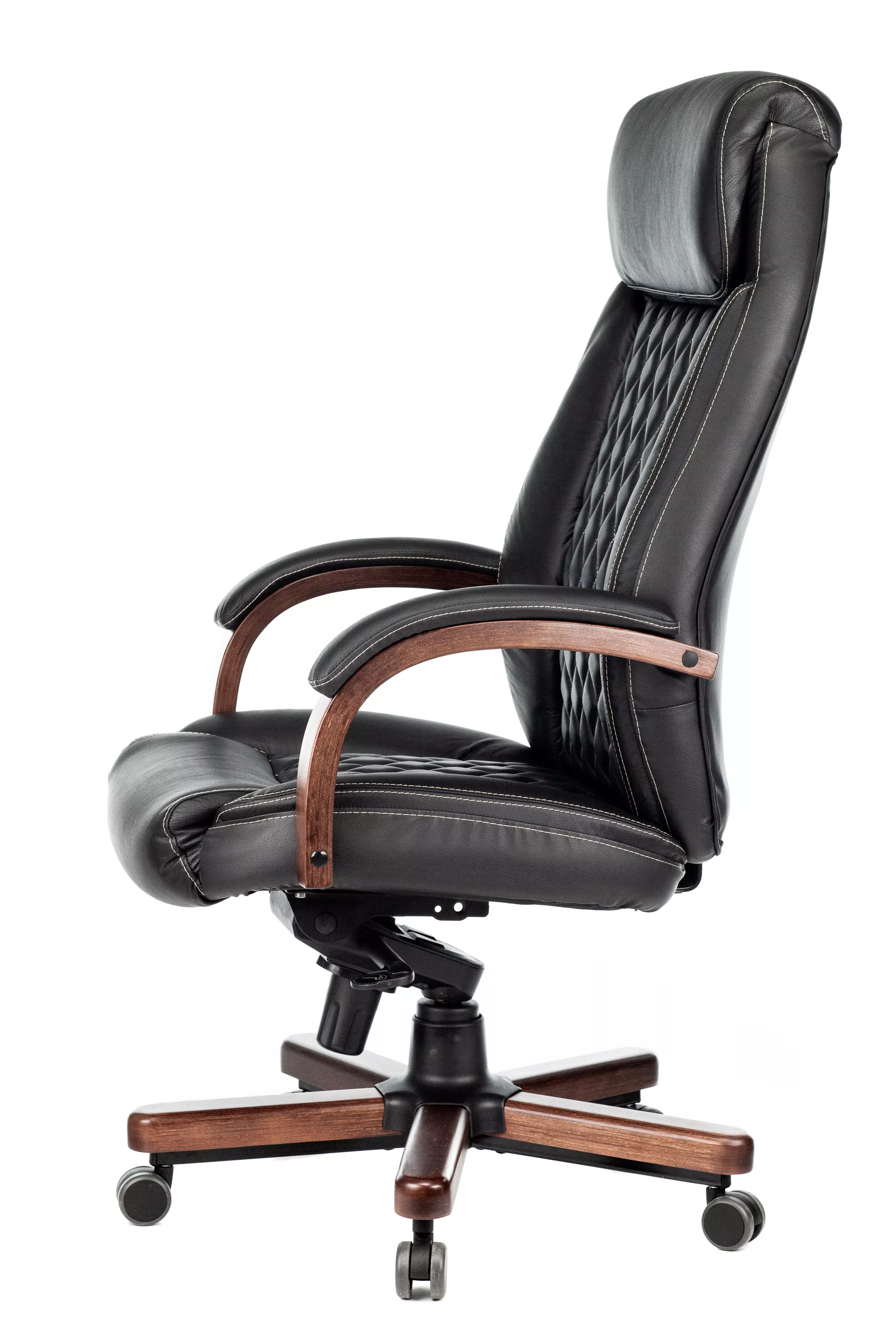 Элегантный дизайн спинки с выпуклыми рельефными боковинами и накладным подголовником обеспечивают удобную мягкую посадку и правильную поддержку спины, без симптомов усталости. Фигурное тиснение «мелкие ромбы» на средней части спинки и сиденья, изогнутые подлокотники с кожаными накладками создают изысканный дизайн и мягкий массажный эффект.