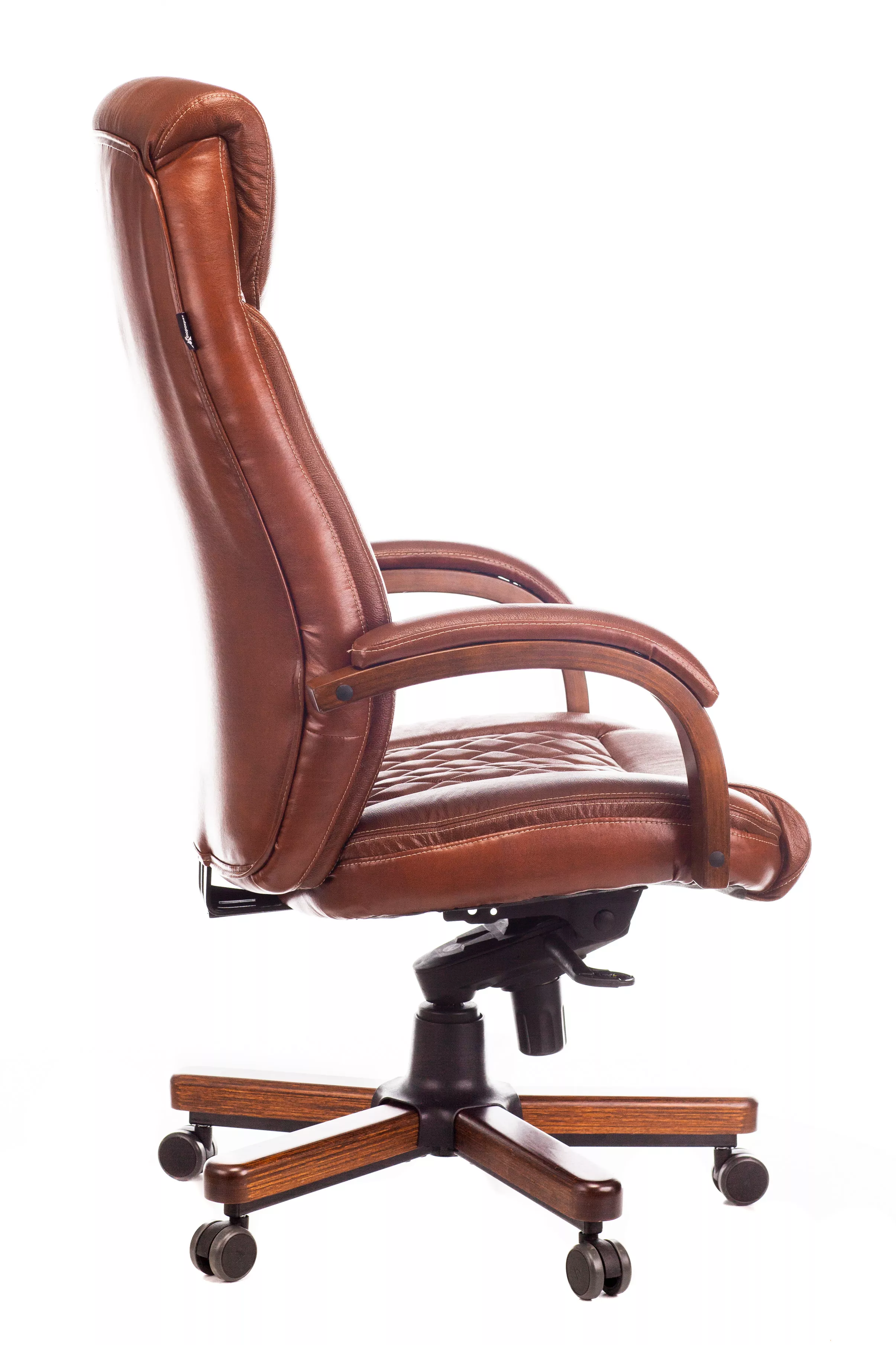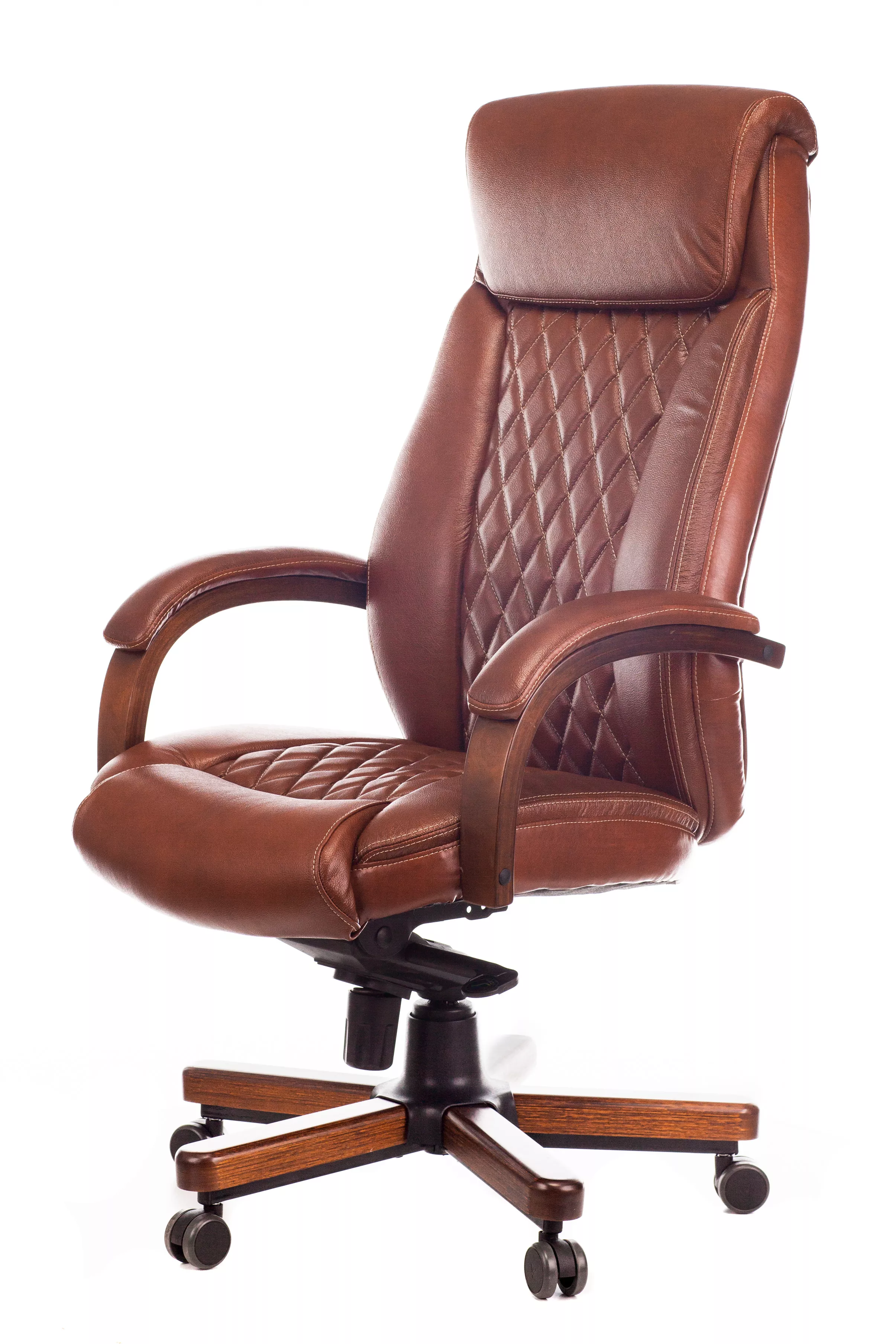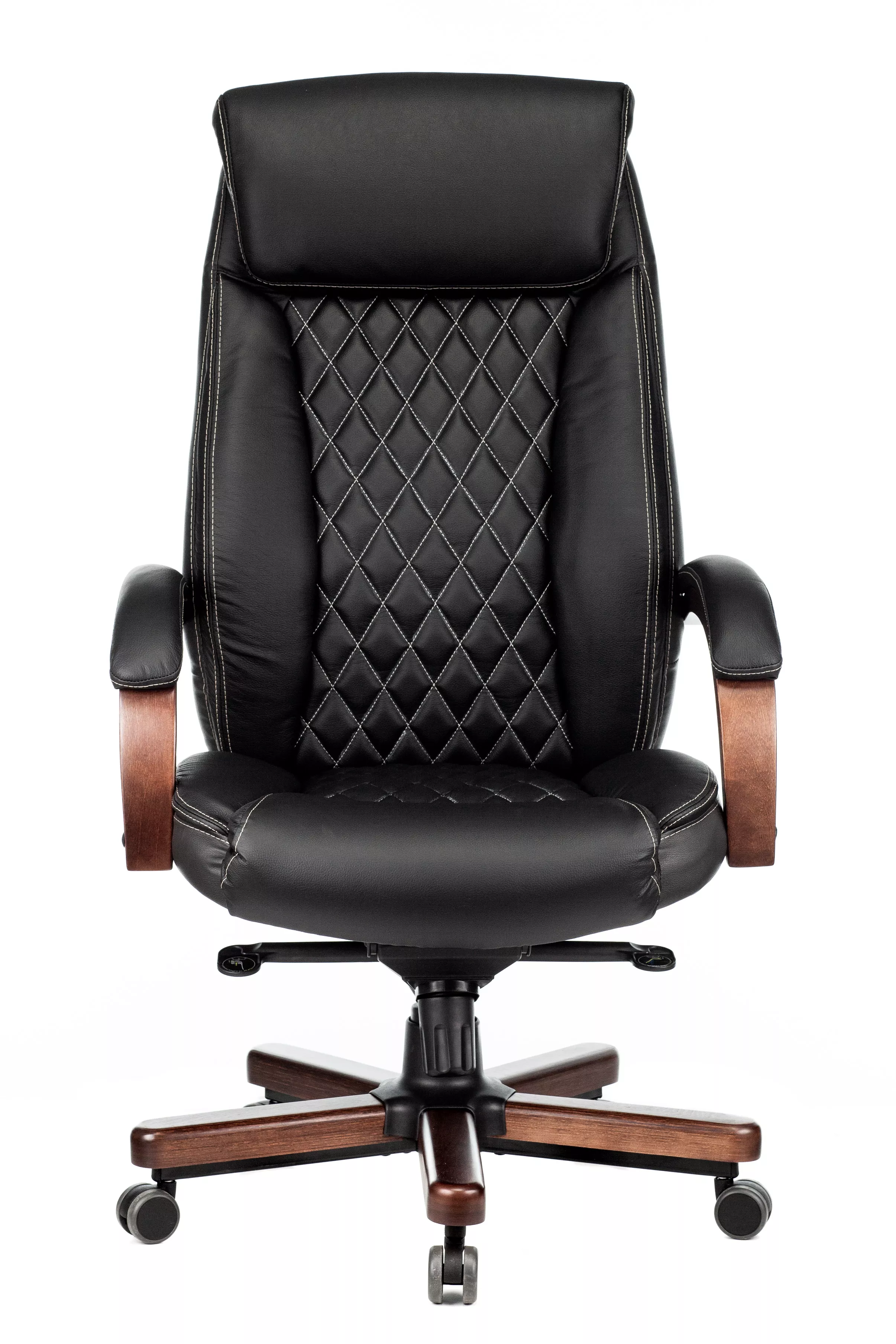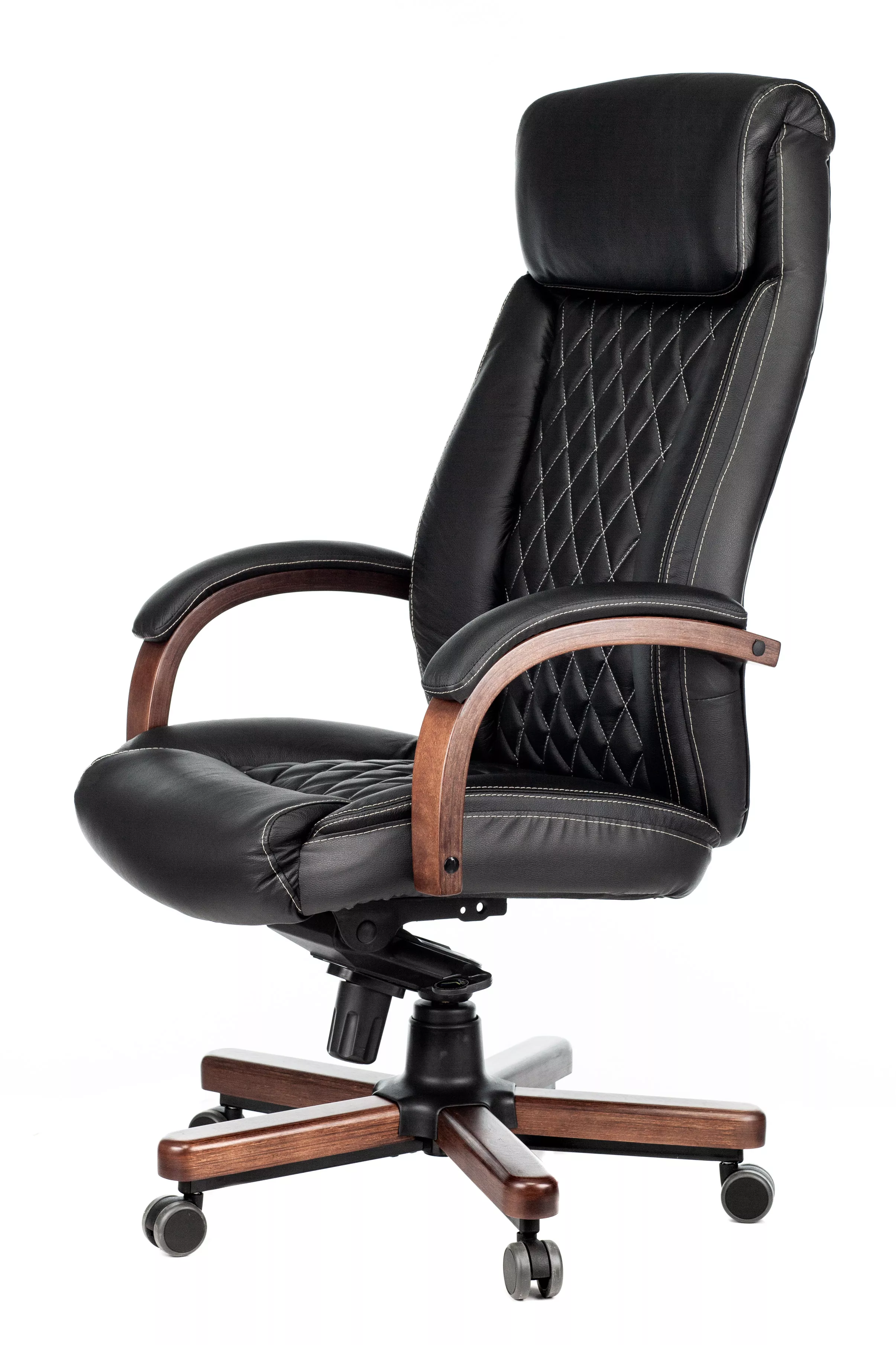 Элегантный дизайн спинки с выпуклыми рельефными боковинами и накладным подголовником обеспечивают удобную мягкую посадку и правильную поддержку спины, без симптомов усталости. Фигурное тиснение «мелкие ромбы» на средней части спинки и сиденья, изогнутые подлокотники с кожаными накладками создают изысканный дизайн и мягкий массажный эффект.