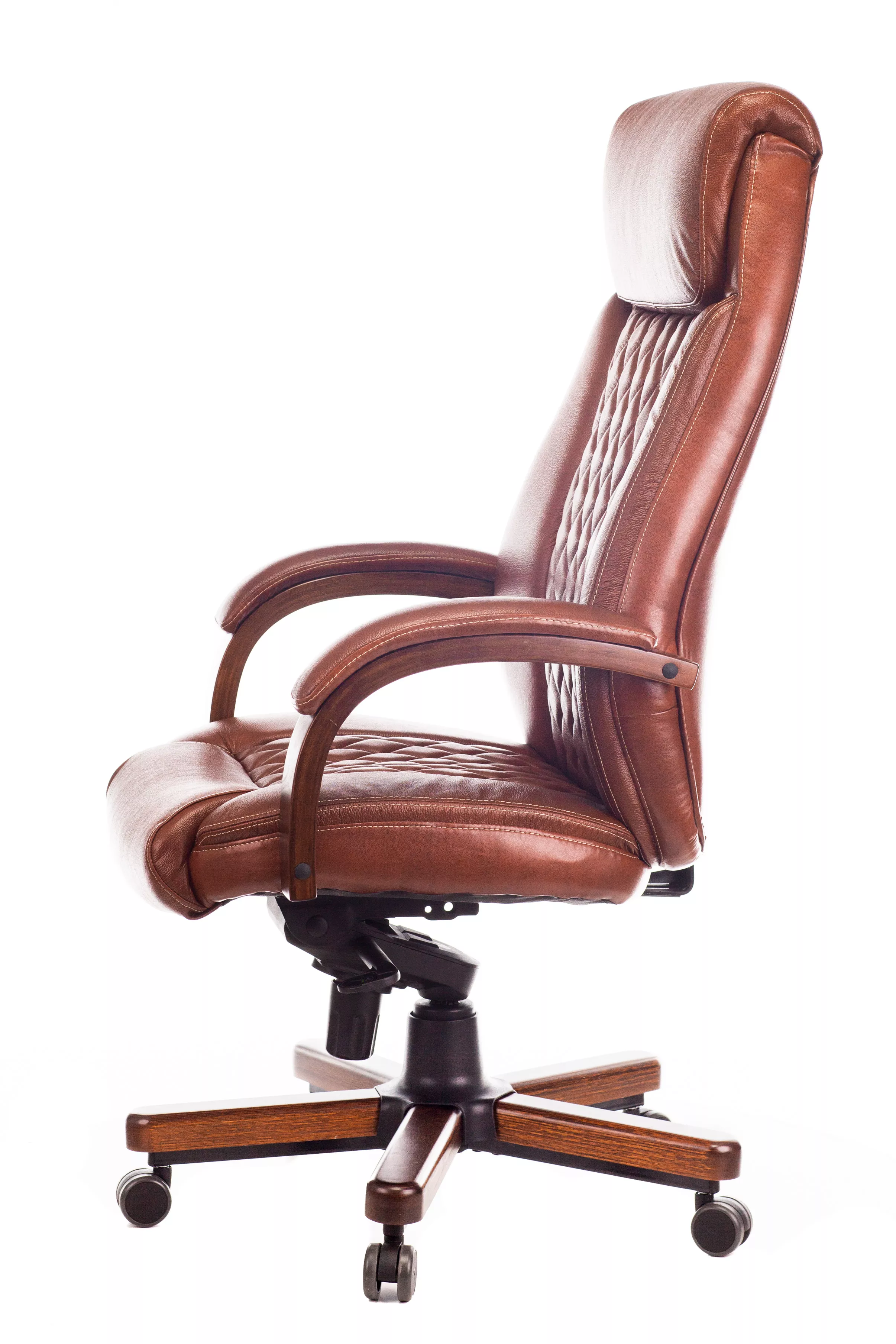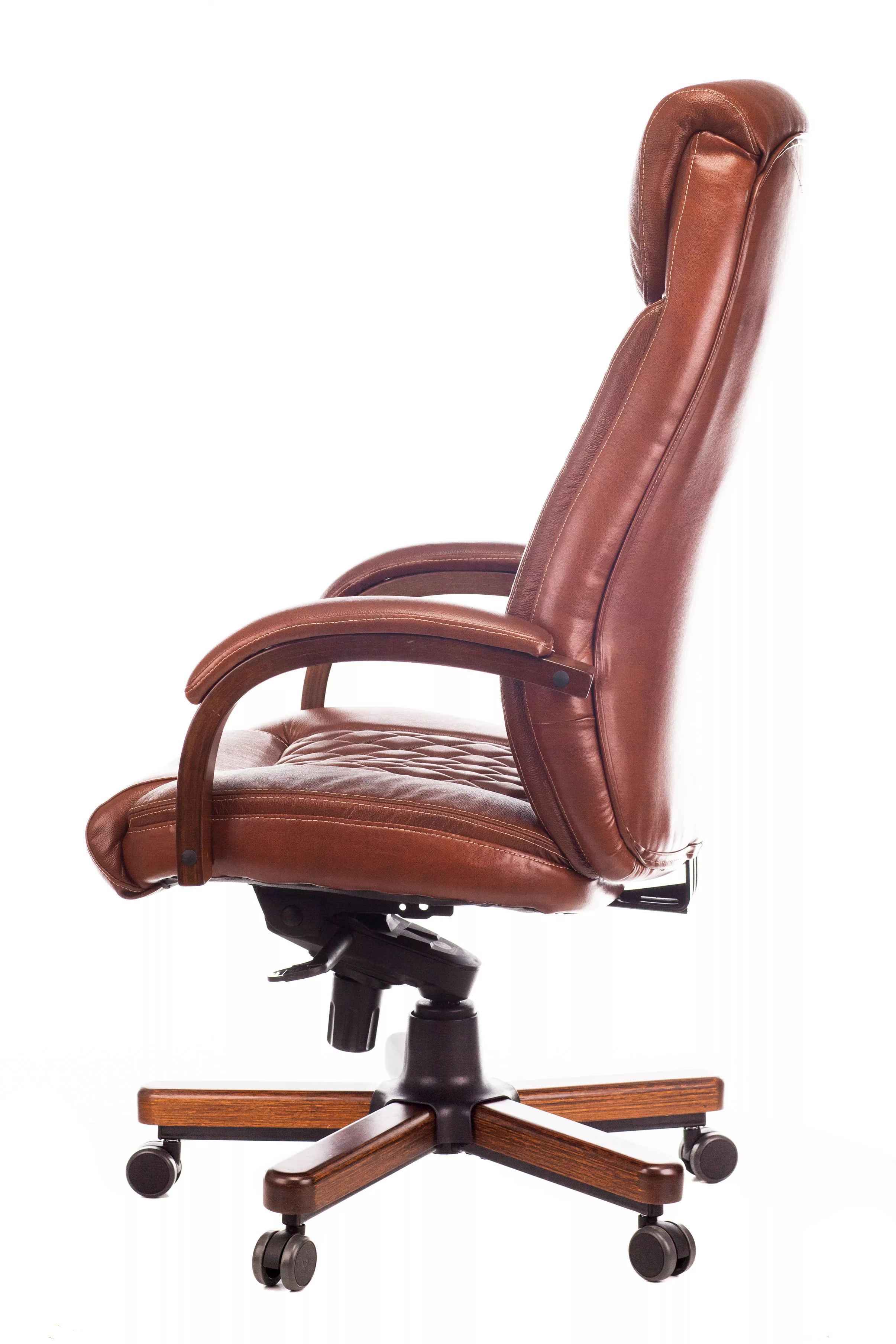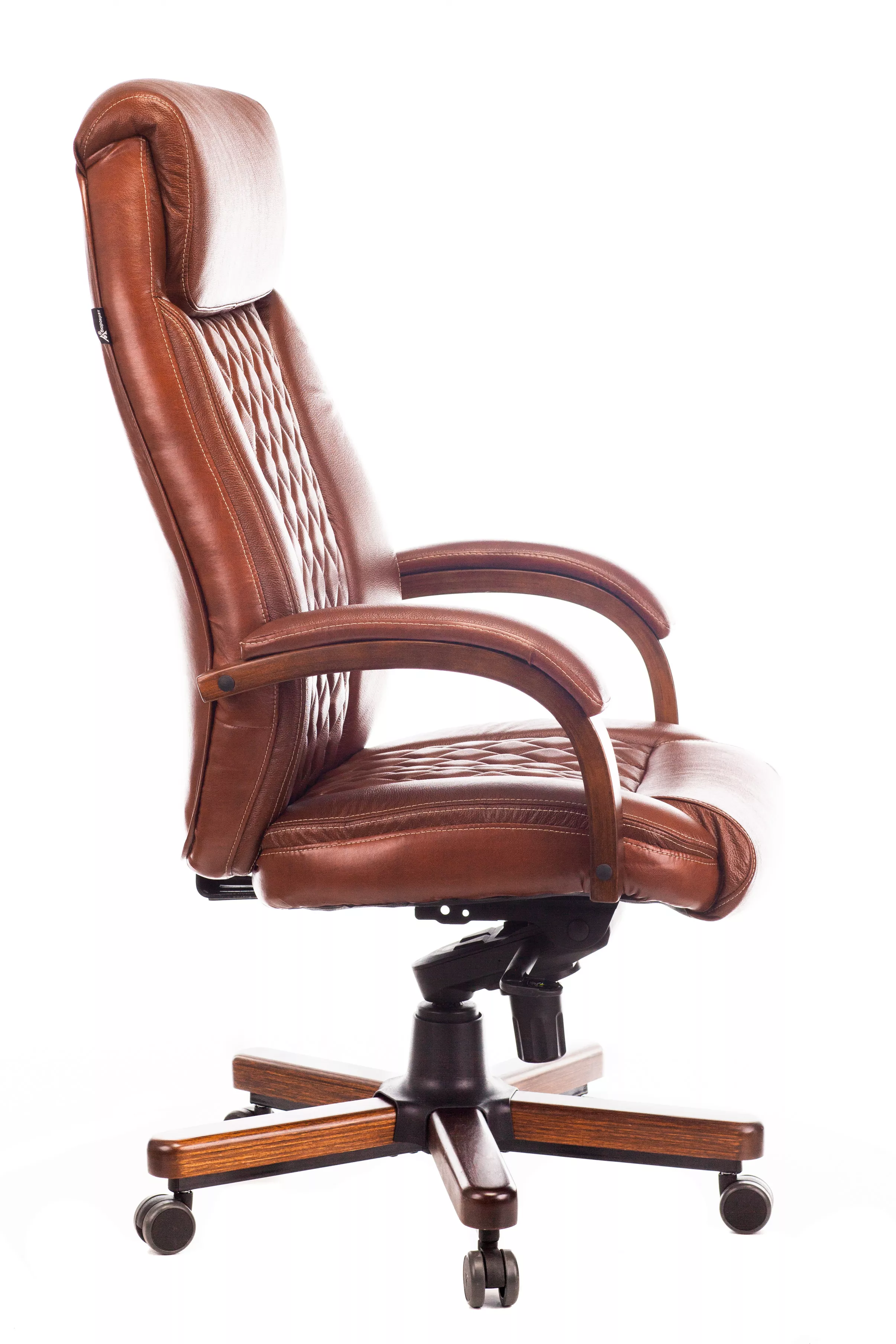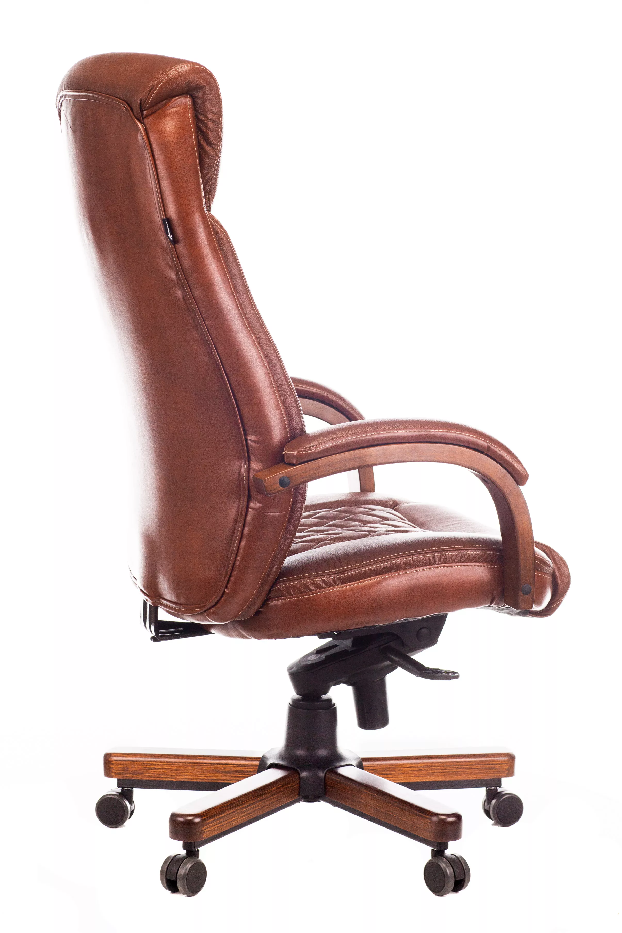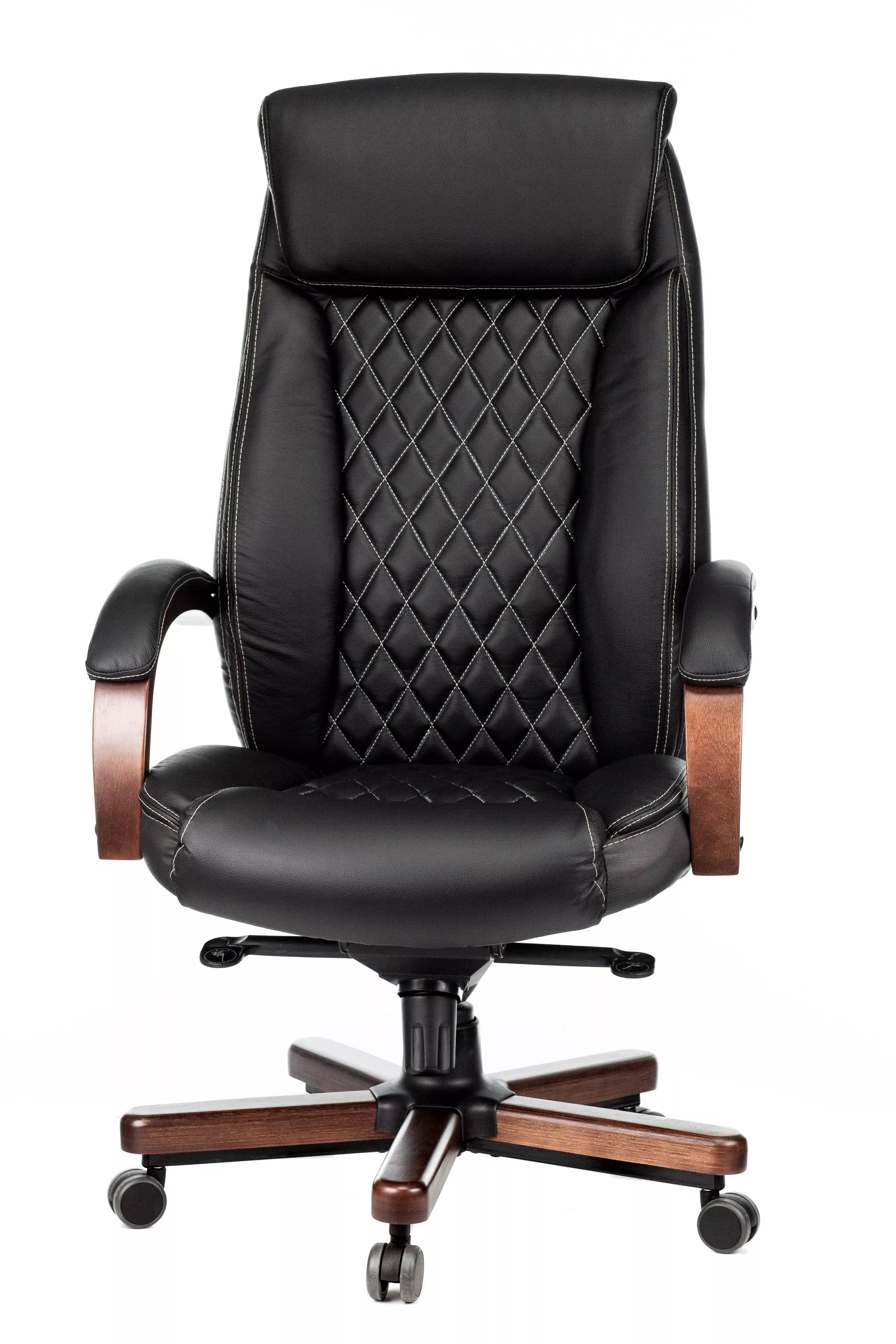 Элегантный дизайн спинки с выпуклыми рельефными боковинами и накладным подголовником обеспечивают удобную мягкую посадку и правильную поддержку спины, без симптомов усталости. Фигурное тиснение «мелкие ромбы» на средней части спинки и сиденья, изогнутые подлокотники с кожаными накладками создают изысканный дизайн и мягкий массажный эффект.