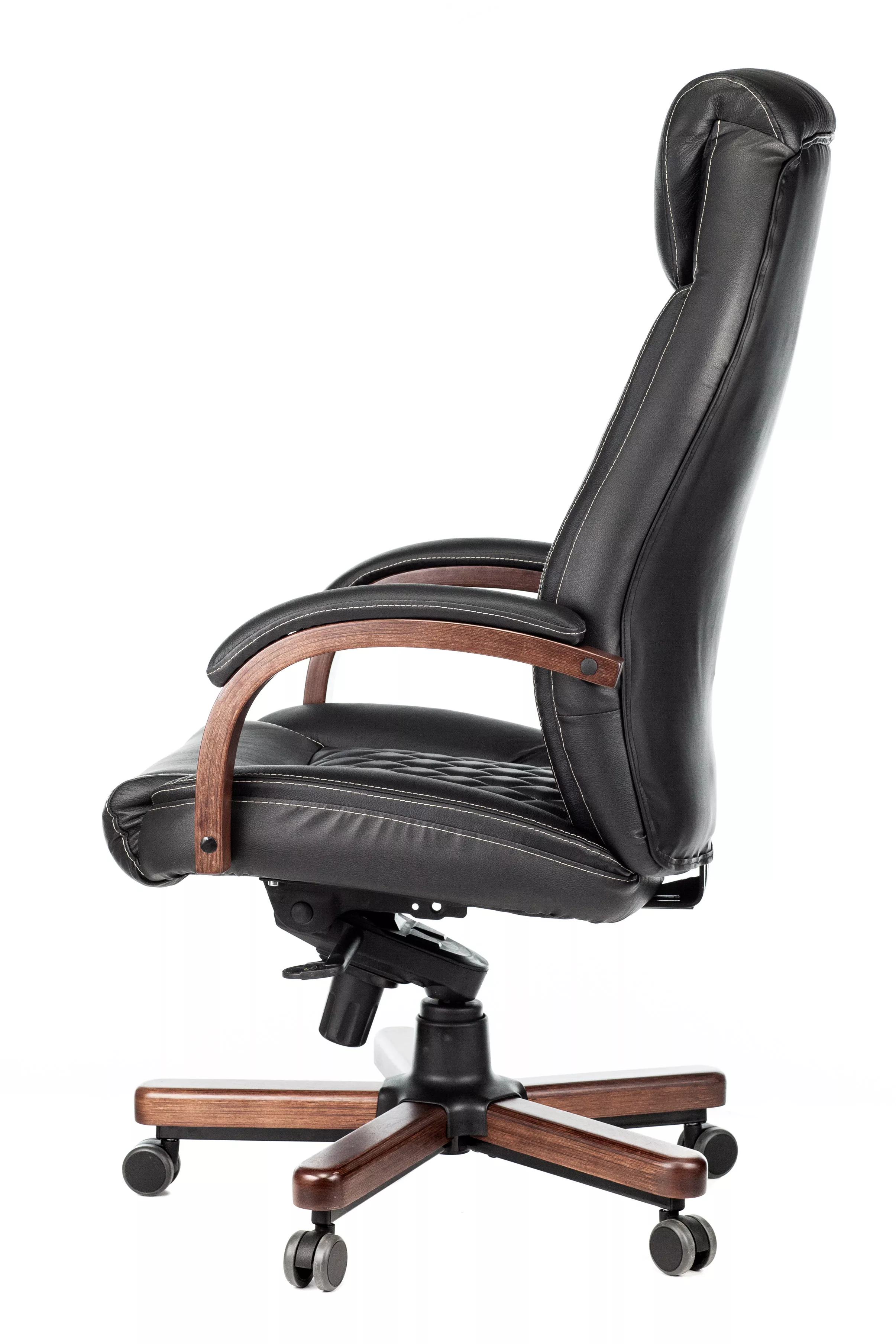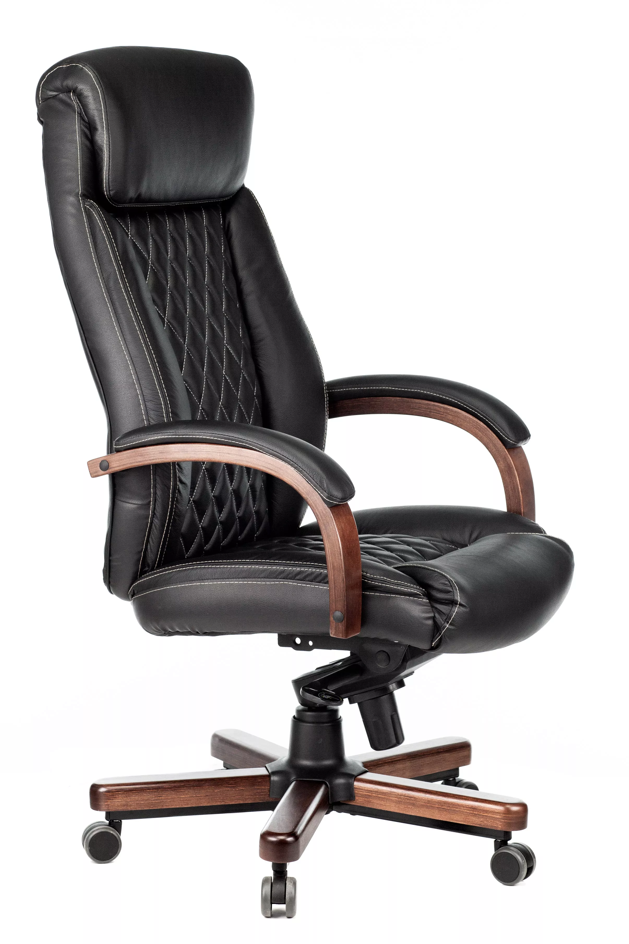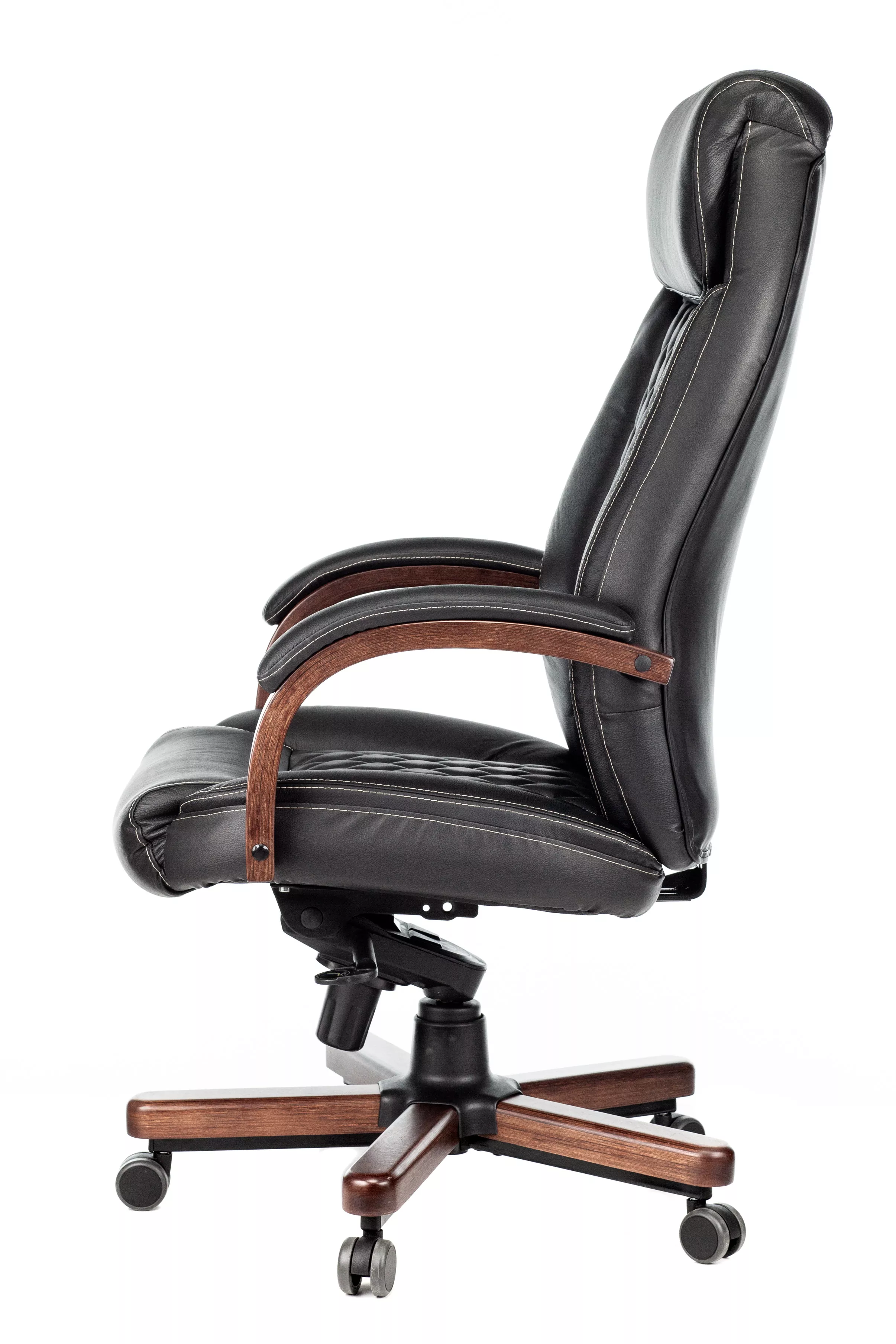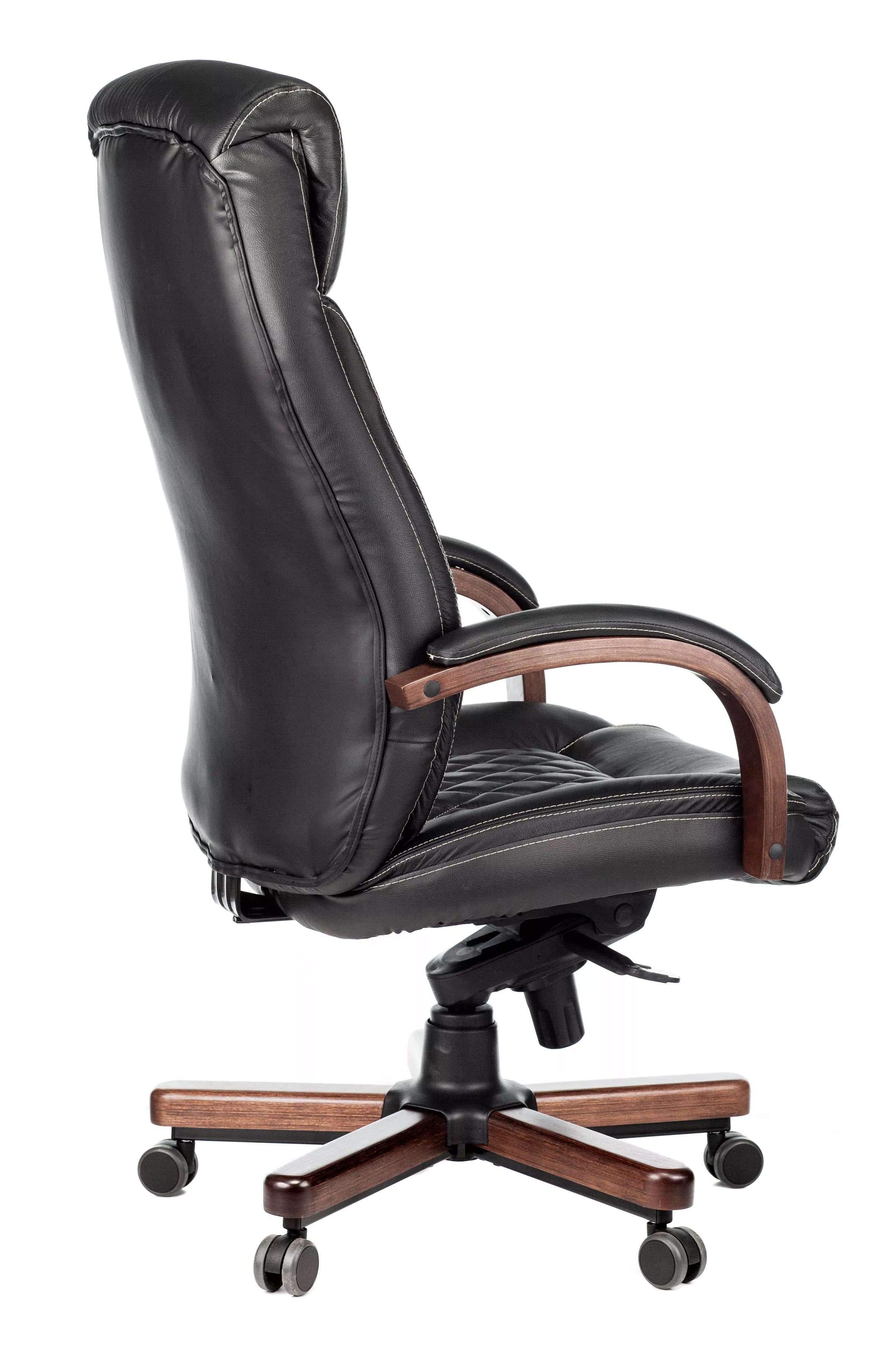 кресло T-9924Walnut, чёрная кожа с компаньоном