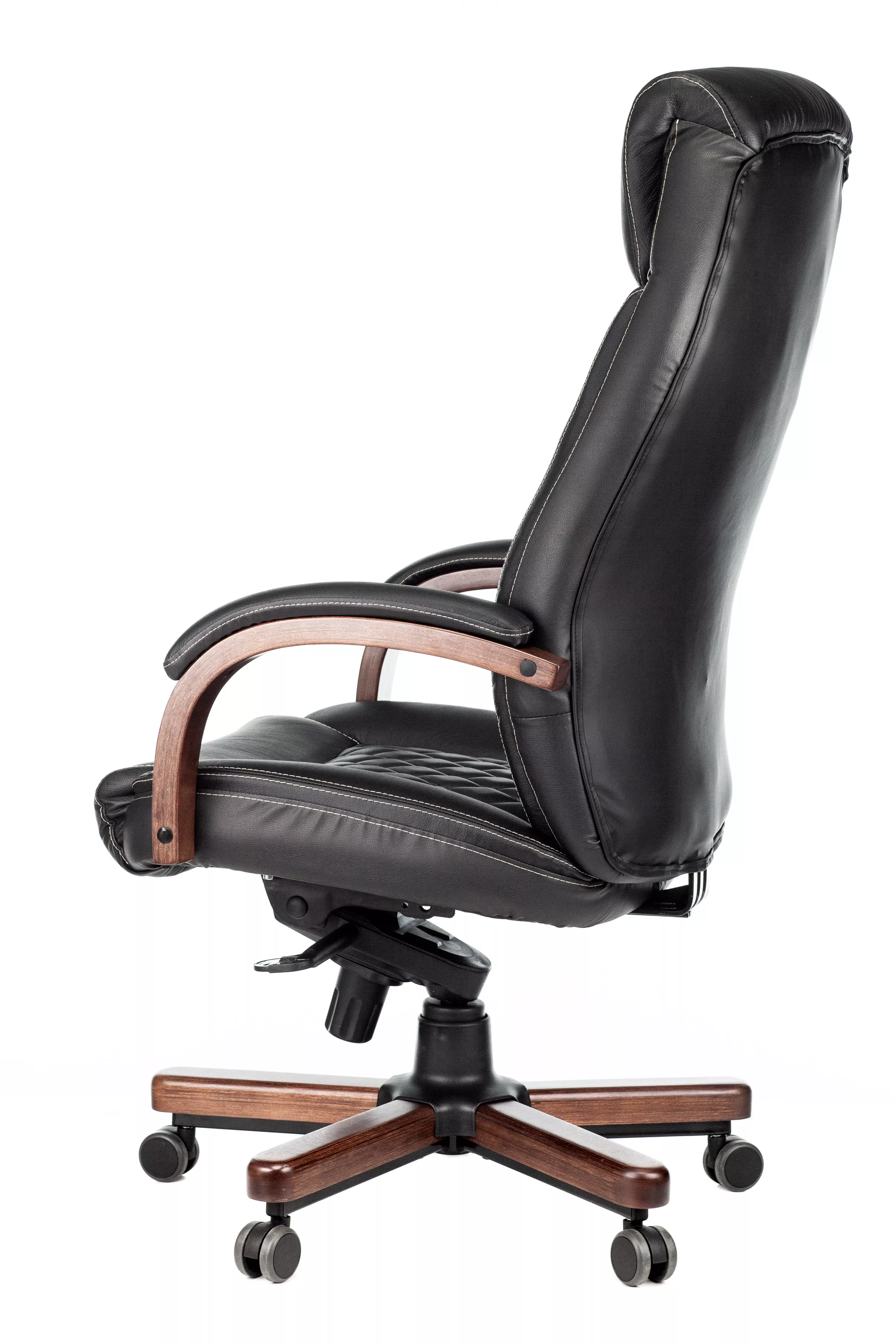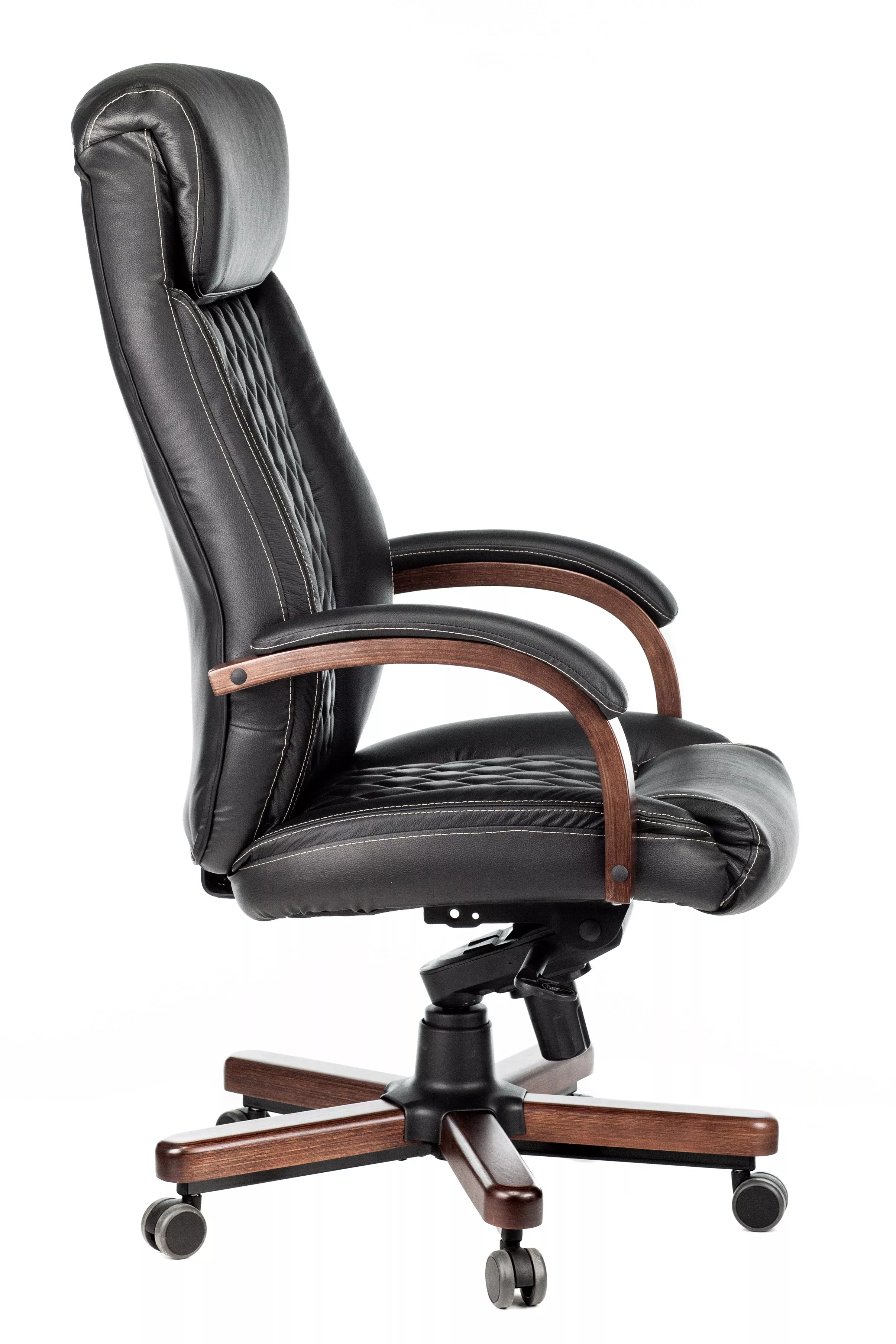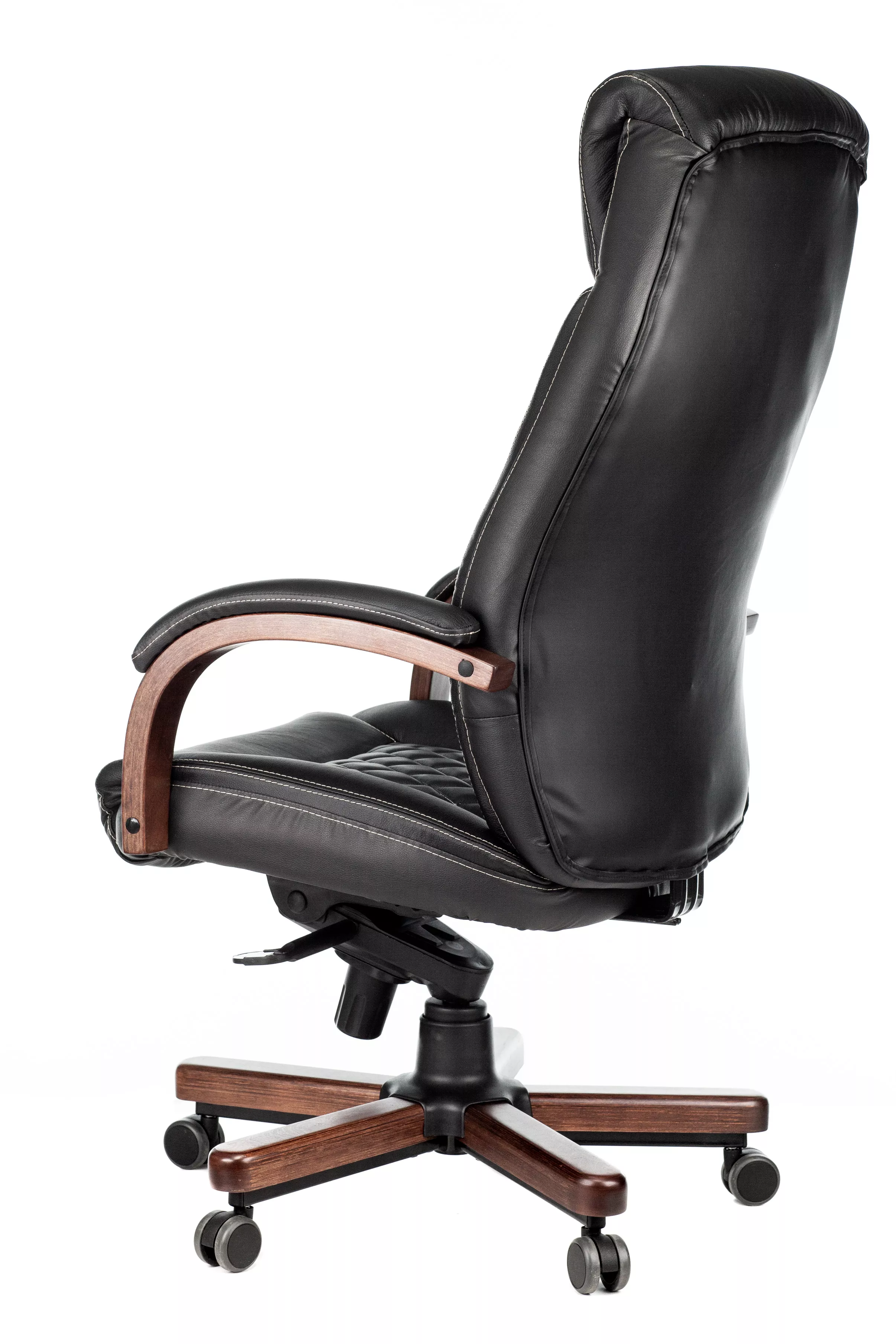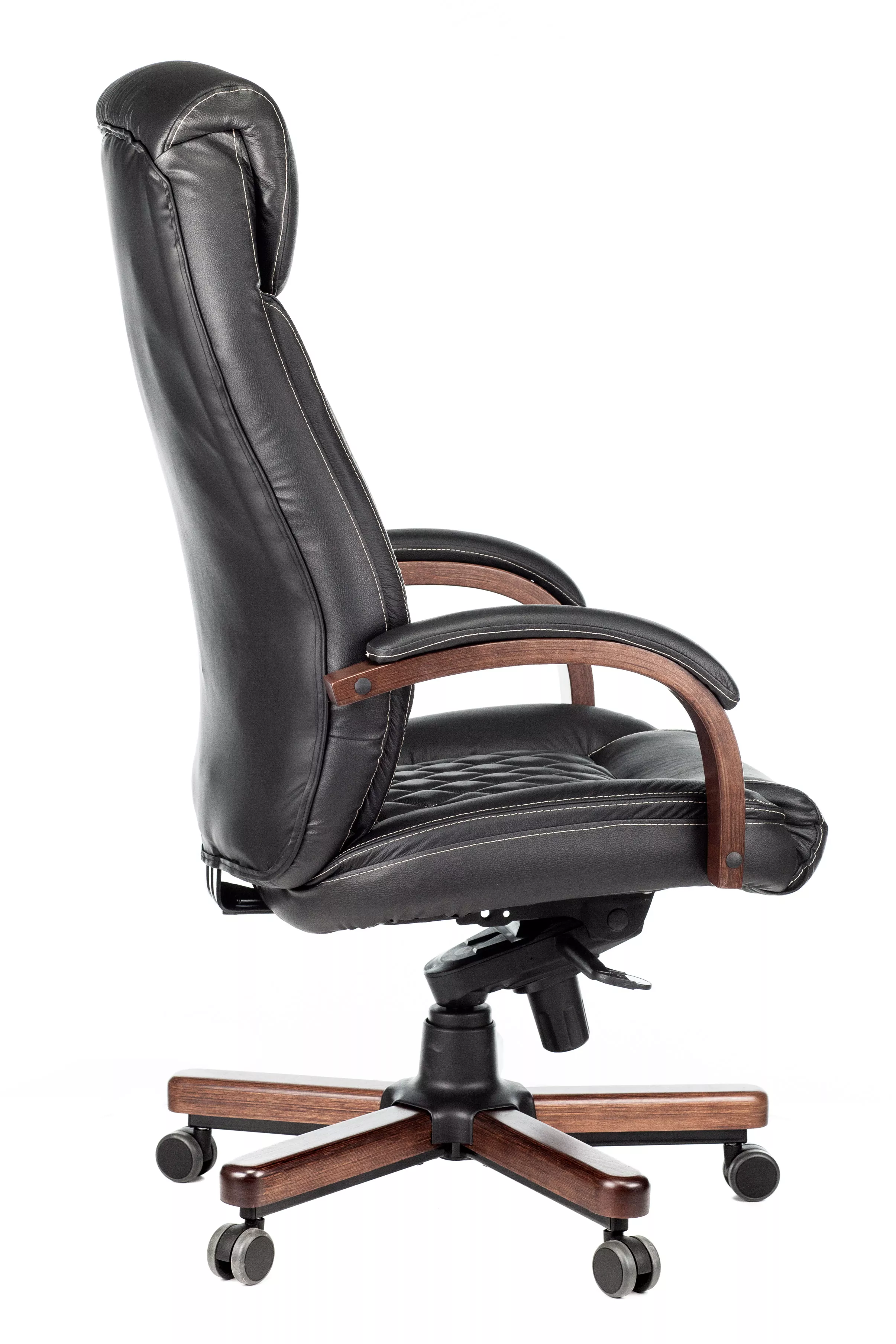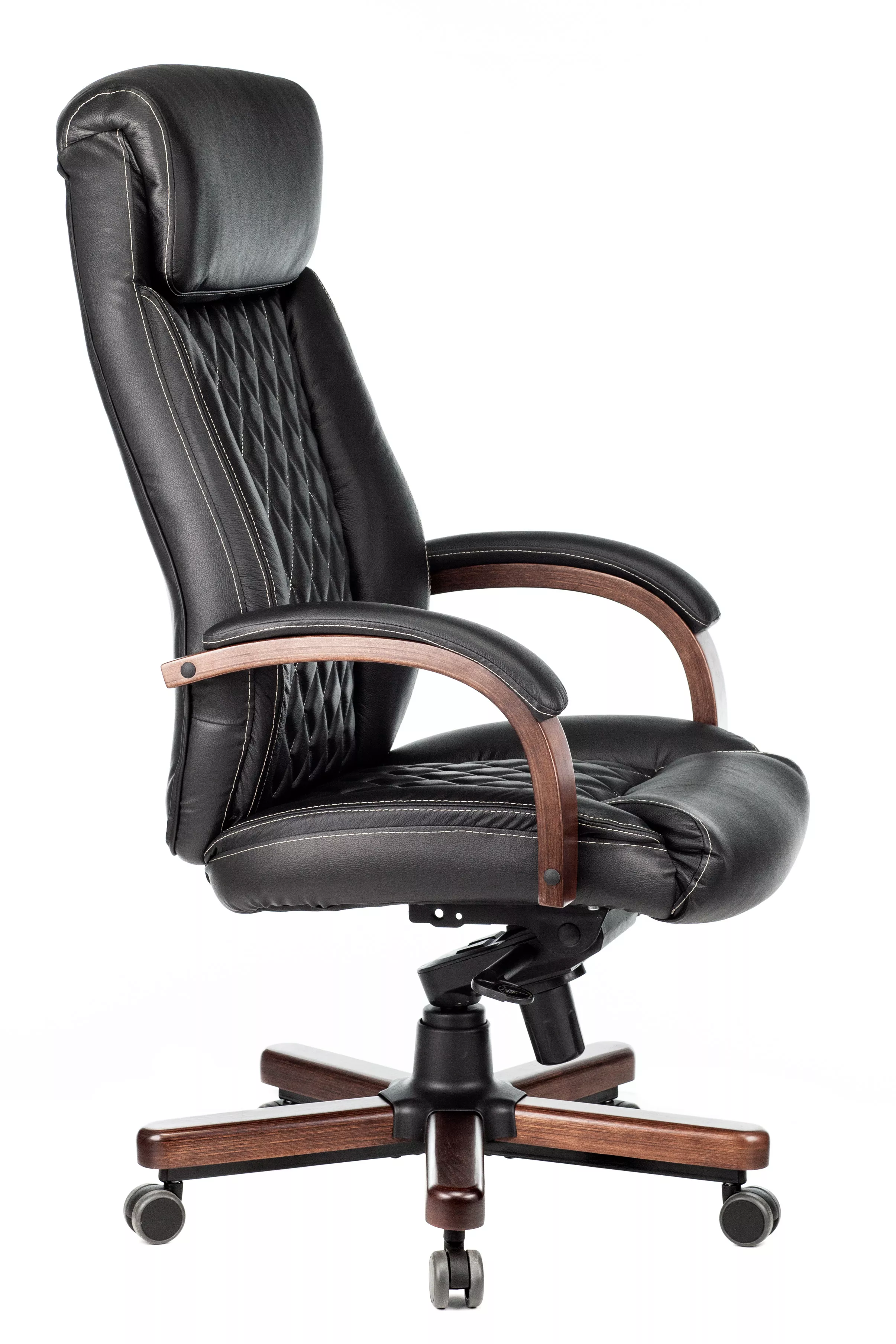кресло T-9924Walnut, чёрная кожа с компаньоном