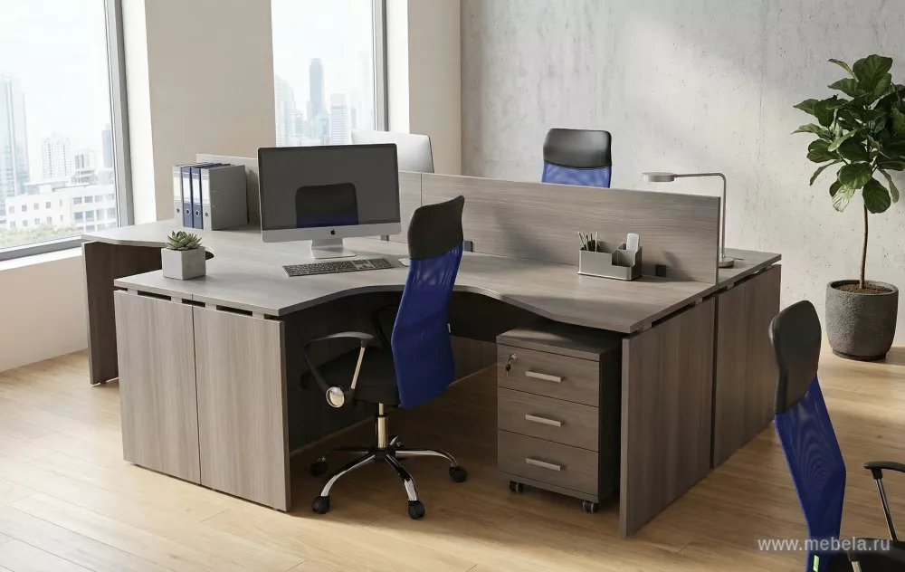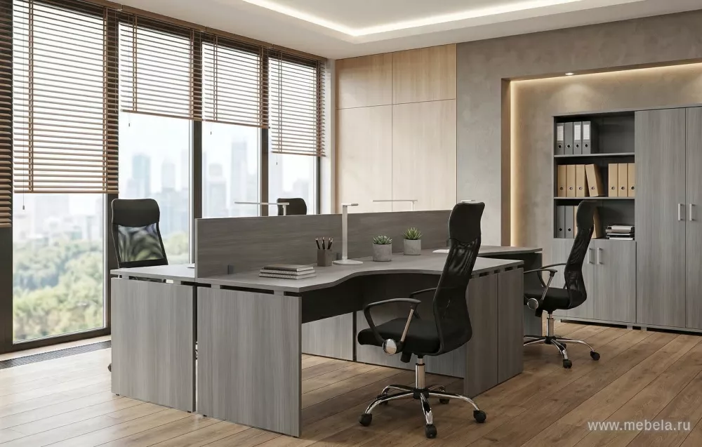 Мебель для персонала «Аргентум» в цвете Лиственница - это стильное и современное решение для офисных пространств. Основная модная тенденция для столов в данной серии - "парящая" столешница, которая приподнимается от опор с помощью алюминиевых проставок. Этот дизайн придает мебели ультрасовременный и легкий вид.
