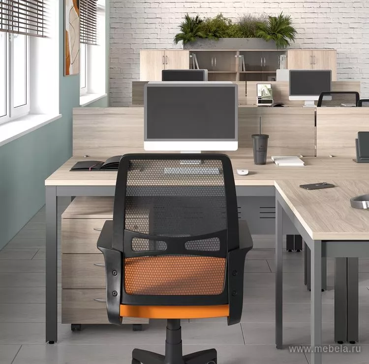 Главной особенностью мебели для офисов Формула МП2 является возможность создания из нее сложно-комбинированных рабочих зон. Гарнитур представлен самыми разными геометрическими решениями, одинаковыми по высоте, способными быть объединенными друг с другом по воле заказчика.