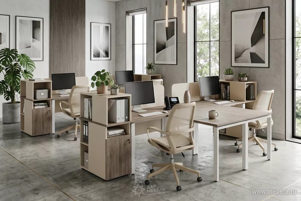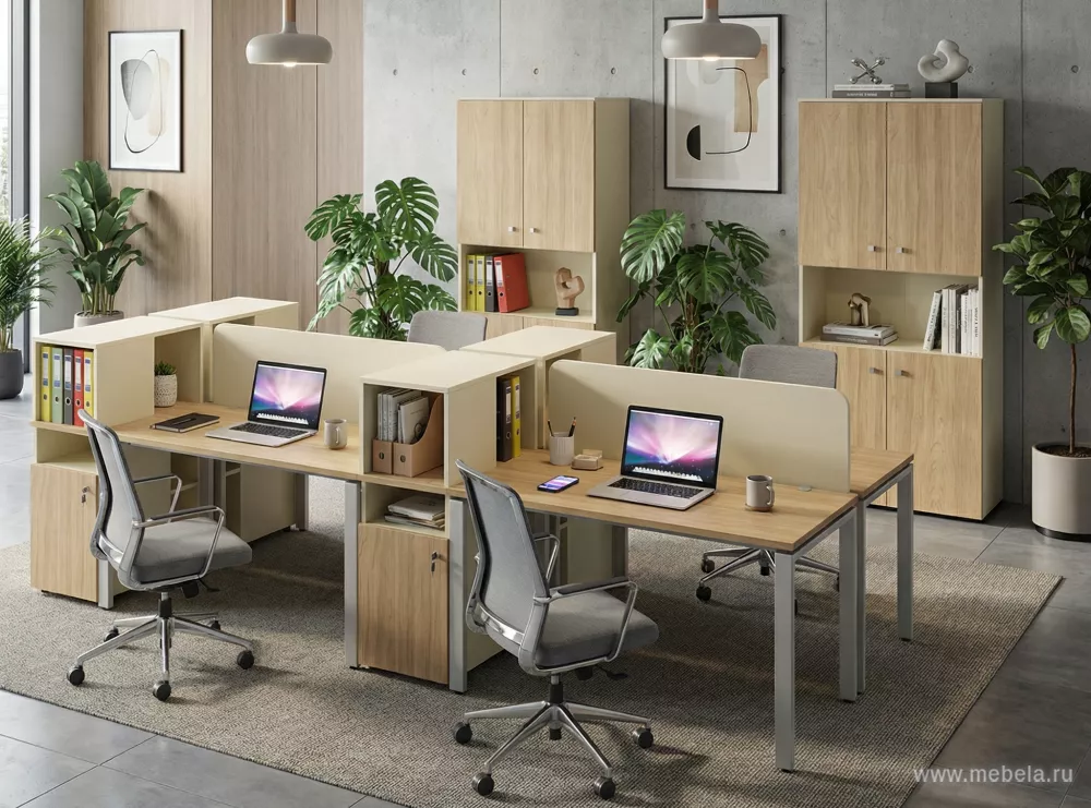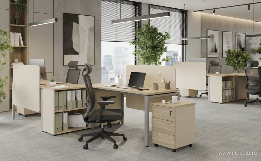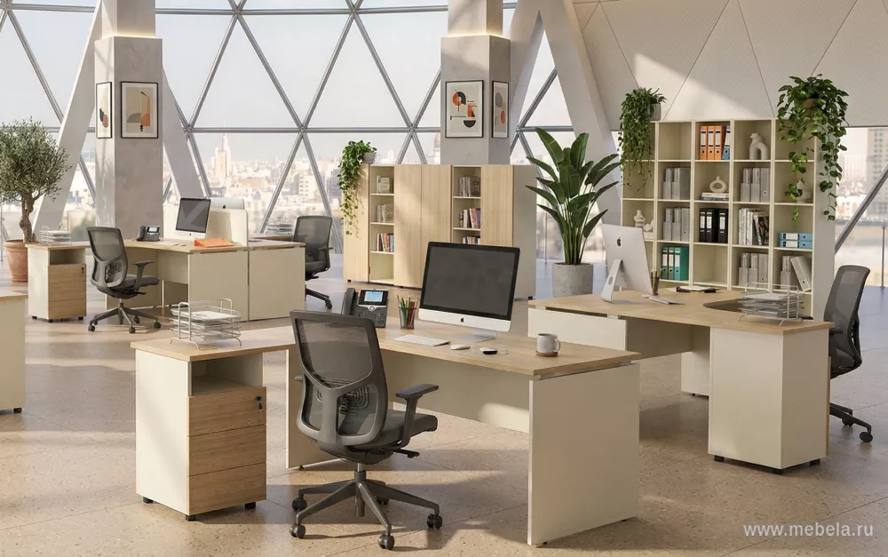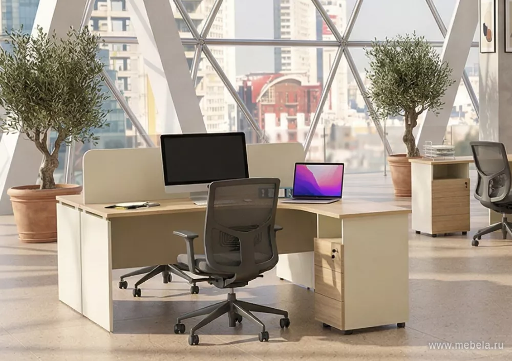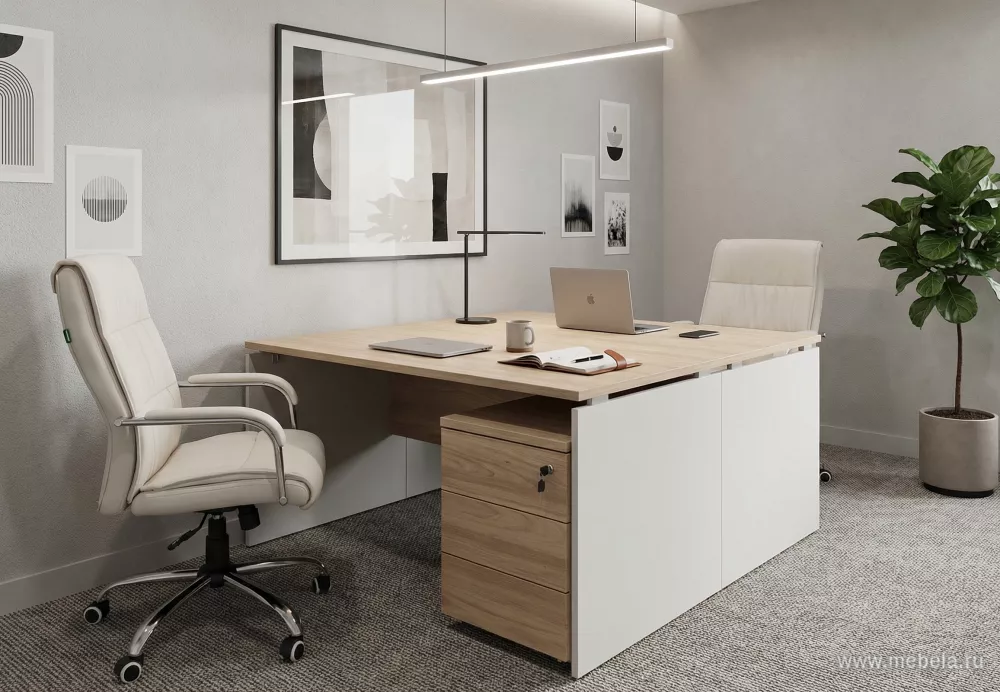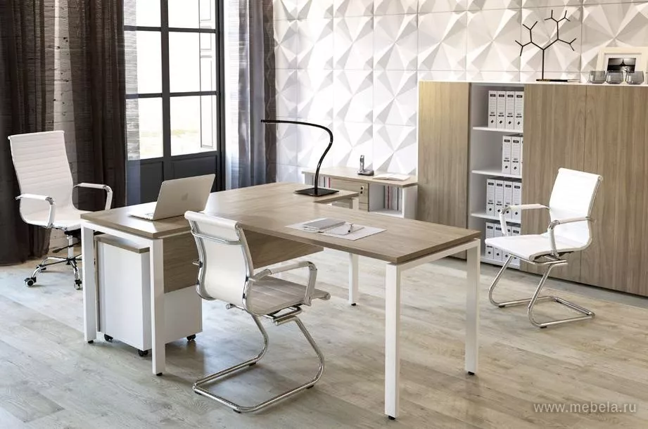 Мебель Рио обладает повышенной компактностью, что делает ее идеальным решением для маленьких офисов или еще развивающихся стартапом. При этом, данный гарнитур обладает своим собственным стилем за счет комбинированного использования цветов и применения металла в создании элементов мебели.