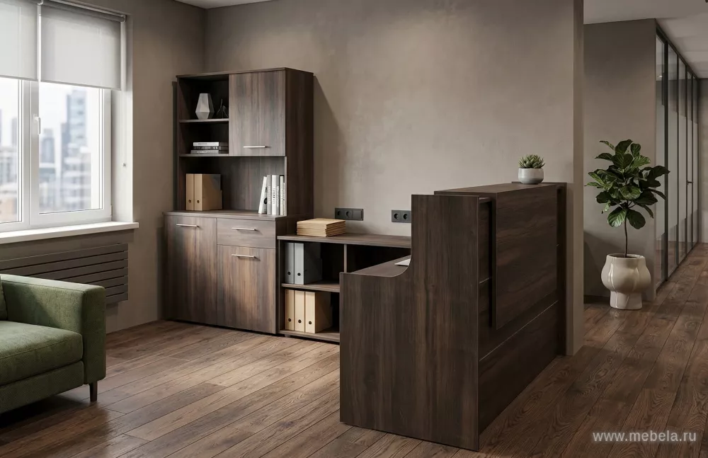 Ресепшн Оникс Мали (Onix) в цвете Дуб Мали выполнена в эргономичном и современном стиле. Оригинальные геометрические модули и возможность объединения нескольких контрастных декоров придают стойке визуальную легкость и стиль. Модные цвета древесного декорирования в сочетании с белым цветом опор столешницы и топа освежают...